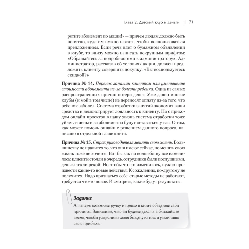 Если вы хотите открыть свое дело, то детский клуб или центр - это отличная идея для вашего бизнеса. Софья Тимофеева - владелица франшизной сети детских клубов и бизнес-консультант - поможет вам поверить в себя и организовать деятельность вашего клуба с нуля. Вы получите пошаговые инструкции по открытию детского клуба, узнаете, как привлечь максимум клиентов, наладить процесс управления и развивать свой бизнес. Кроме этого, в книге подробно описаны возможности создания онлайн-проектов для детского клуба, которые так важны для успешной работы в период кризиса. Вы узнаете, какие направления можно задействовать, какое оборудование вам понадобится и как наладить работу онлайн. Издание будет полезно начинающим предпринимателям, собственникам и руководителям детских клубов. Советы автора помогут любому владельцу малого бизнеса правильно расставить приоритеты и начать зарабатывать больше даже в период кризиса.