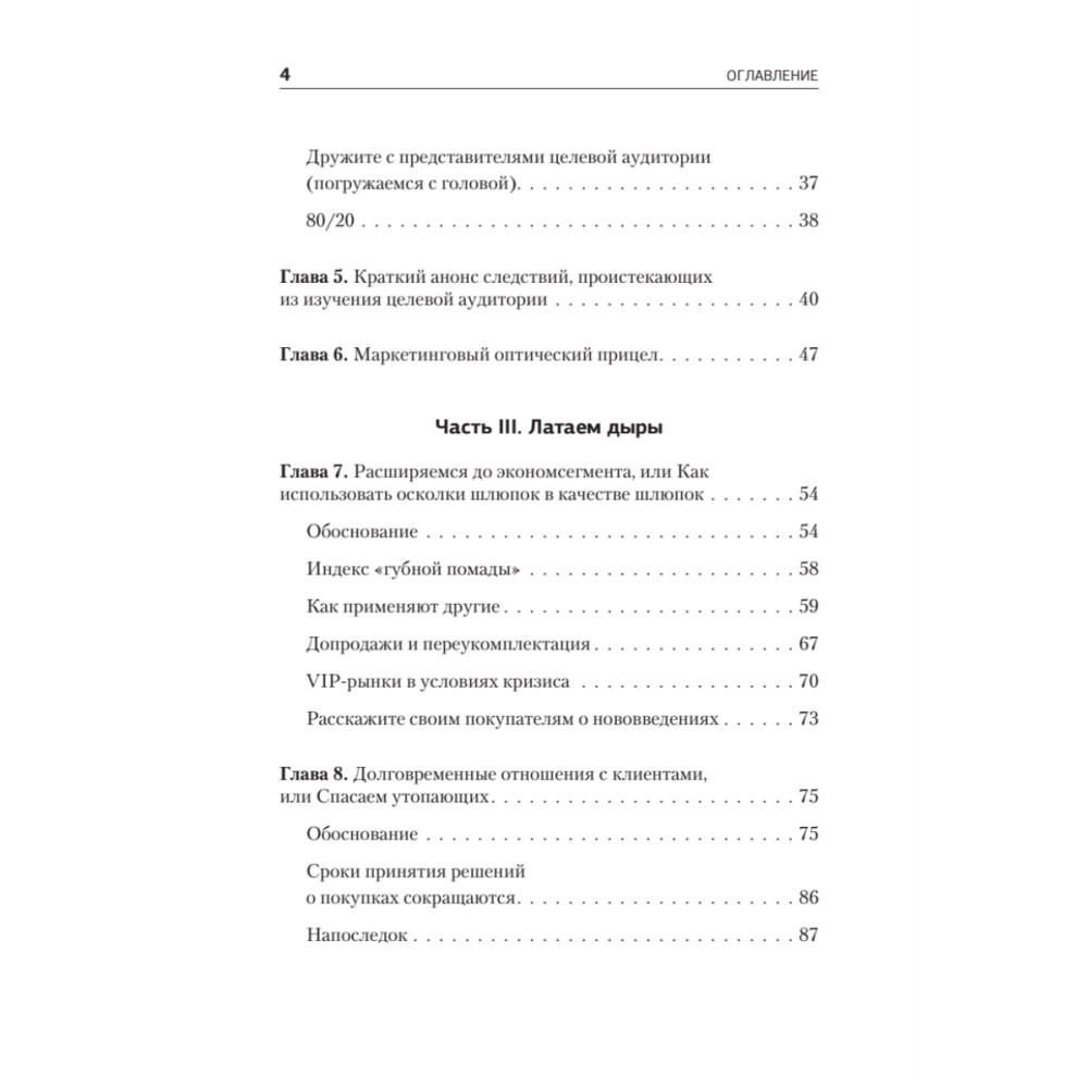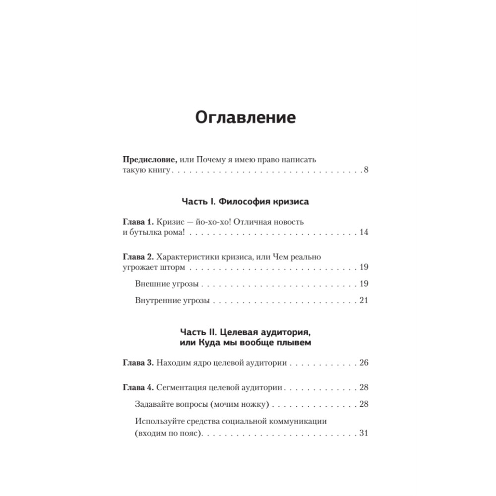 Книга последовательно отвечает на вопросы: чем реально опасна «кризисная» ситуация на рынках, что с ней делать, откуда вынимать деньги и куда вкладывать, как работать с рекламой, маркетингом, а также персоналом в состоянии повышенной энтропии, что для потребителей во время кризиса важнее всего и как это использовать в своем бизнесе. Целевая аудитория книги — владельцы бизнесов, маркетологи, фрилансеры и все, кто так или иначе связан с маркетинговой деятельностью, особенно в условиях кризиса.