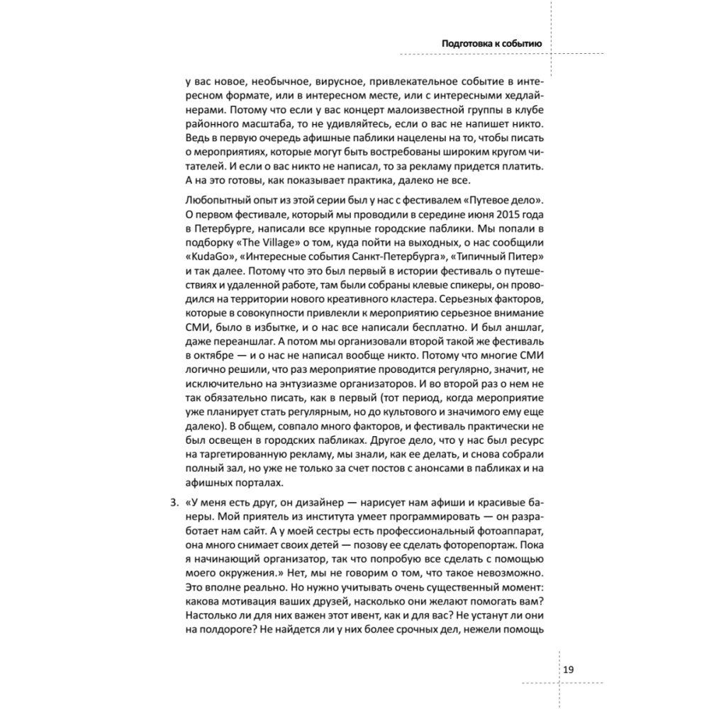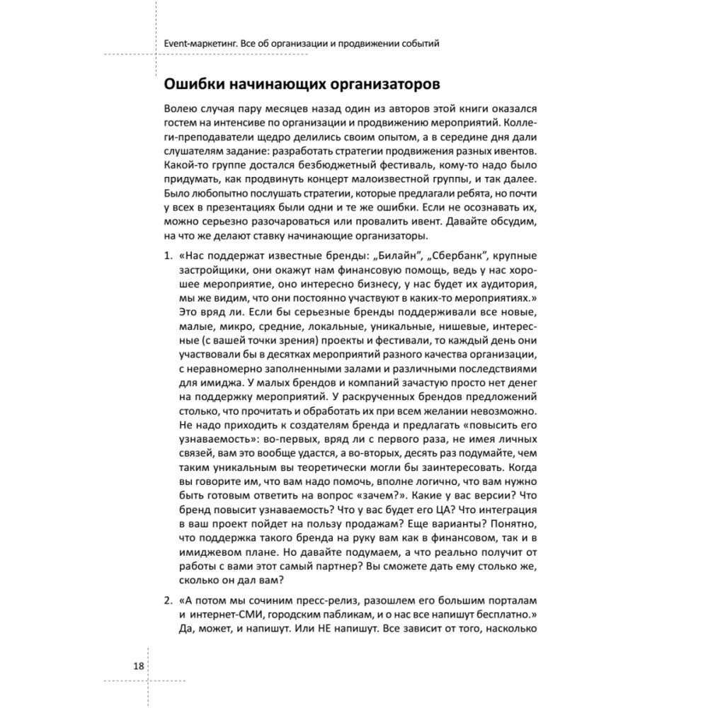 Каждый день в России проходят тысячи мероприятий самой разной направленности. Концерты, фестивали, семинары и тренинги, конференции, праздники, вечеринки, онлайн-трансляции. Как их организовывать? Как привлекать на event людей в условиях высокой конкуренции? Как провести мероприятие, чтобы посетители остались довольны? Как получить много новых клиентов в свой бизнес с помощью событий? Книга ответит на эти вопросы. Для кого эта книга? – для организаторов открытых мероприятий любых форматов – для представителей рекламных, PR- и event-агентств – для музыкантов и арт-директоров – для малого, среднего и крупного бизнеса Наталия Франкель и Дмитрий Румянцев — создатели и ведущие крупнейшего блога в социальных сетях об event-маркетинге. Организаторы sold out-конференций и фестивалей: «Суровый питерский SMM», «Найди свой трафик», SOLD OUT, VideoDays, SMM-десант, «Детский Петербург» и других.