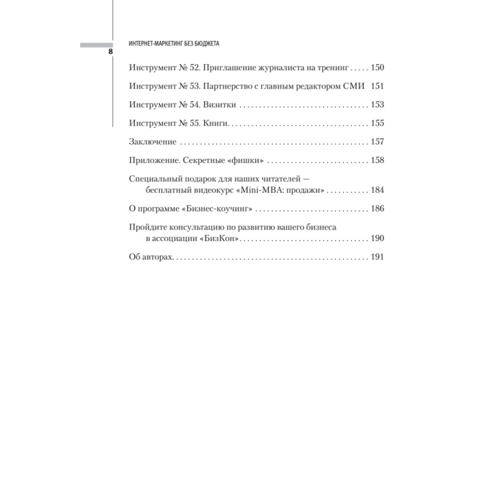 Эта книга о бесплатной лидогенерации (lead generation), то есть о том, как бюджетными, а то и вовсе бесплатными способами настроить поток потенциальных клиентов через Интернет. Здесь вы найдете как минимум 55 безбюджетных инструментов лидгена. Книгу можно изучить всего за день, прочитав от корки до корки, но она принесет гораздо больше пользы, если вы будете внедрять инструмент за инструментом и последуете нашим советам.