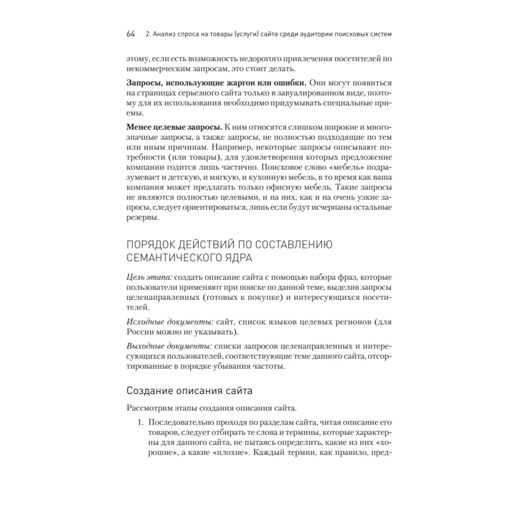 Перед вами обновленное и актуализированное издание, которое поможет сориентироваться в сложном и противоречивом мире поисковой оптимизации. Автор приводит способы привлечения большего количества клиентов на сайт без дополнительных инвестиций в рекламу за счет создания проекта в соответствии с требованиями поисковых систем («Яндекс», Google и др.). В книге также обобщен практический опыт ведущих российских компаний по разработке интернет-решений. Вы узнаете, как создать эффективную систему поисковой оптимизации с учетом новейших разработок SEO, получите конкретные рекомендации по оптимизации сайтов различной тематики, созданию с нуля проекта сайта, оптимизации структуры и средств существующего интернет-ресурса компании, увеличению коммерческой эффективности сайта компании. Книга адресована всем, кто начинает постигать основы поисковой оптимизации, а также будет полезна специалистам, отвечающим за поддержку веб-проектов организаций, интернет-маркетологам и руководителям IT-компаний, желающим повысить свой профессиональный уровень.