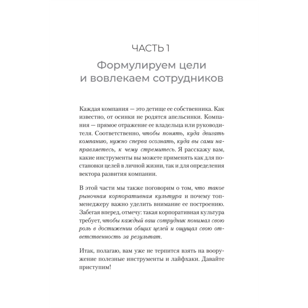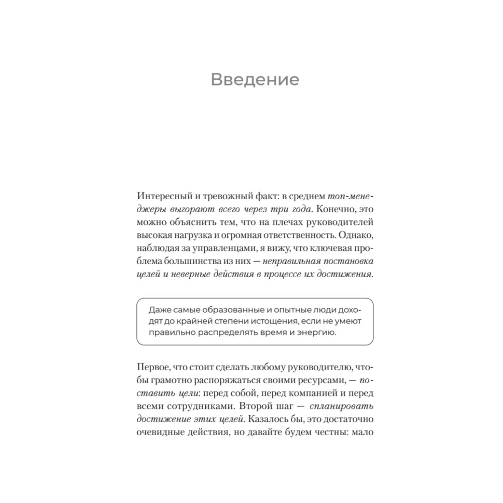 Алгоритмы и советы из книги помогут вам четко формулировать цели для себя, компании и команды, вовлекать сотрудников в достижение масштабных целей, правильно делегировать задачи и эффективно планировать время, сохранять энергию на долгом пути к успеху.