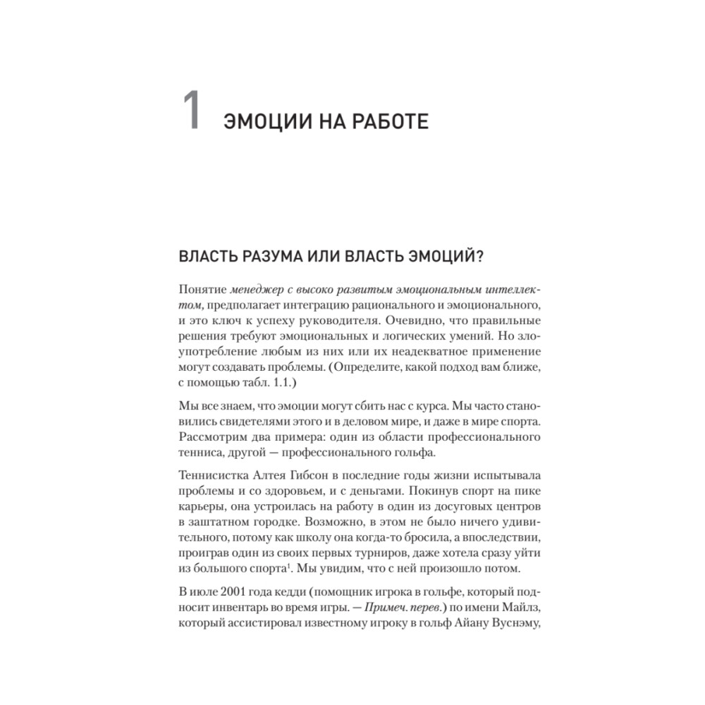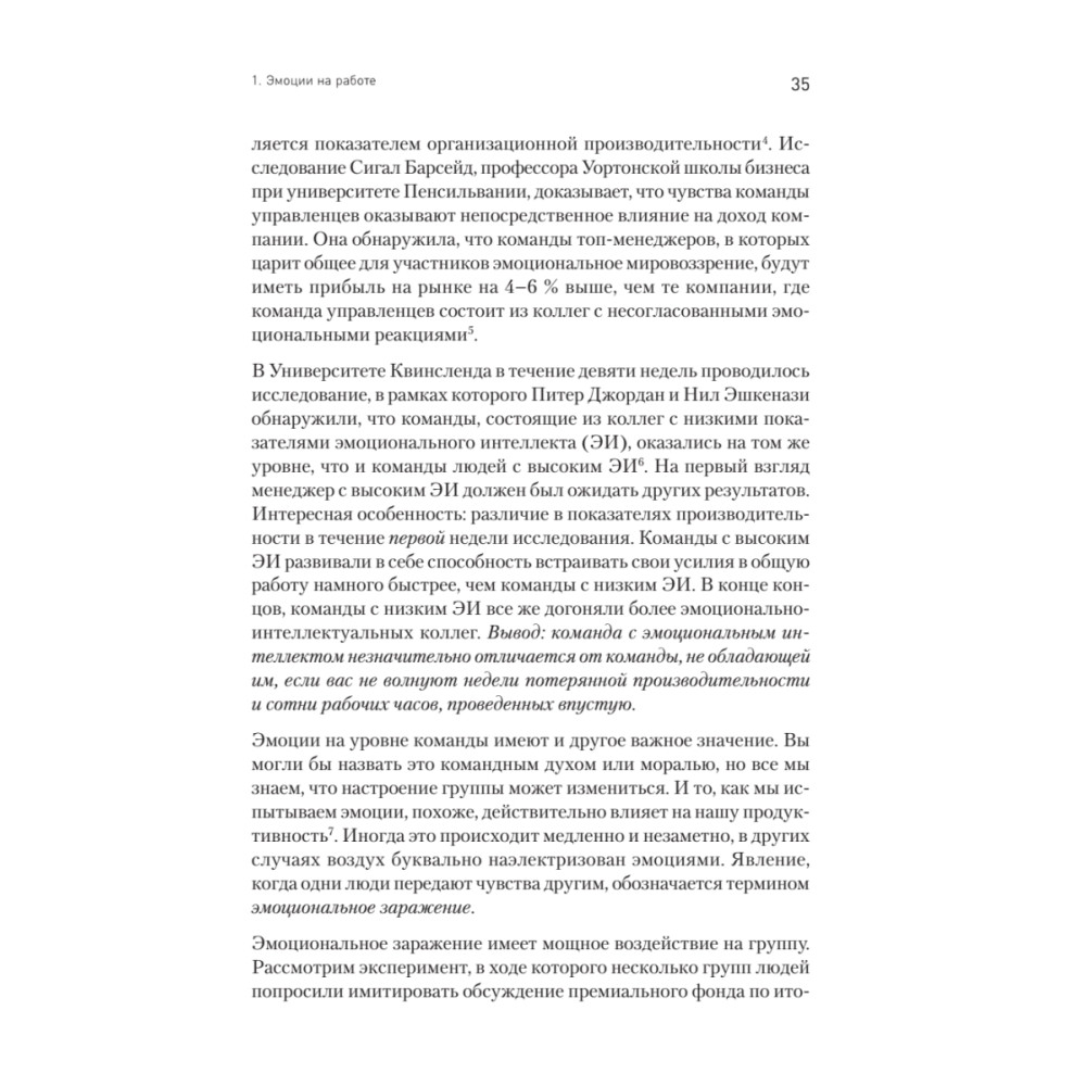 Долгое время считалось, что эмоции, которые мы испытываем и выражаем, необходимо тщательно контролировать. И очень важно следить за ними, находясь на работе, особенно если вы управляете людьми. Считалось, что выражать эмоции на рабочем месте непрофессионально. И многие обычно связывают свои самые большие разочарования и сожаления с неконтролируемой реакцией, когда чувства буквально захлестывают. Из книги вы узнаете, что для человека, обладающего высоким уровнем эмоционального интеллекта, эмоции не только важны, но и абсолютно необходимы для принятия правильных решений, поиска выхода из сложной ситуации, преодоления изменений и достижения успеха. Авторы выделяют четыре различных практических составляющих элемента иерархии эмоциональных навыков руководителя: идентификация эмоций (умение «читать людей»), использование эмоций (умение грамотно направлять эмоции на решение задач), понимание эмоций (умение определить причины появления эмоций и предсказывать эмоциональные сценарии) и управление эмоциями (умение действовать с эмоциями). Вы поймете, как изучать и развивать каждое умение, чтобы использовать их в комплексе для решения самых сложных задач. Издание адресовано менеджерам, руководителям и собственникам компаний, а также всем желающим научиться распознавать эмоции и управлять ими при создании эффективных команд, планировании и принятии решений.
