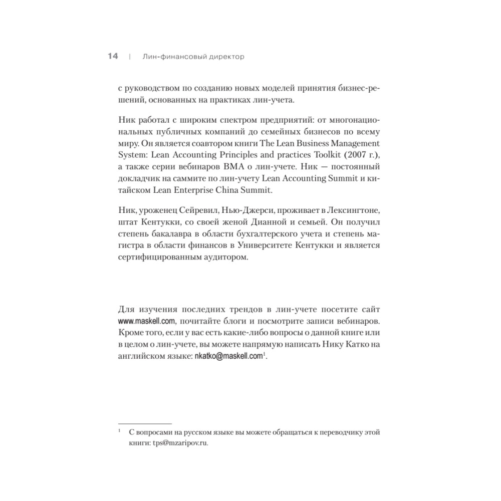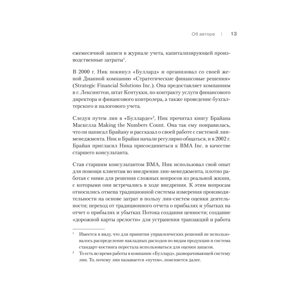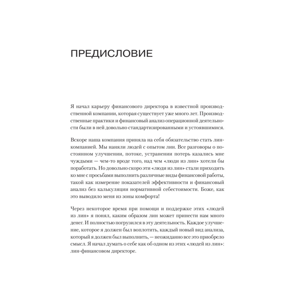 Книга дает ответы на многие системообразующие вопросы интеграции различных методик и инструментов лин с соответствующим им управленческим учетом и системой принятия решений – системой лин-менеджмента. Автор показывает процесс построения и интеграции системы лин-менеджмента в единую лин-бизнес-стратегию для достижения финансового успеха. Вы увидите, почему финансовые директора должны перевести свои компании с традиционных производственных практик на лин-систему измерения деятельности. Вы узнаете, почему необходимо перевести свою компанию на учет по потокам создания ценности; в чем заключаются основы «зарабатывания денег» при использовании лин-бизнес-стратегии; как модифицировать вашу ERP-систему, чтобы она поддерживала лин вместо того, чтобы препятствовать ему. Издание адресовано широкой аудитории: руководителям и собственникам компаний, финансовым директорам, а также консультантам по лин.