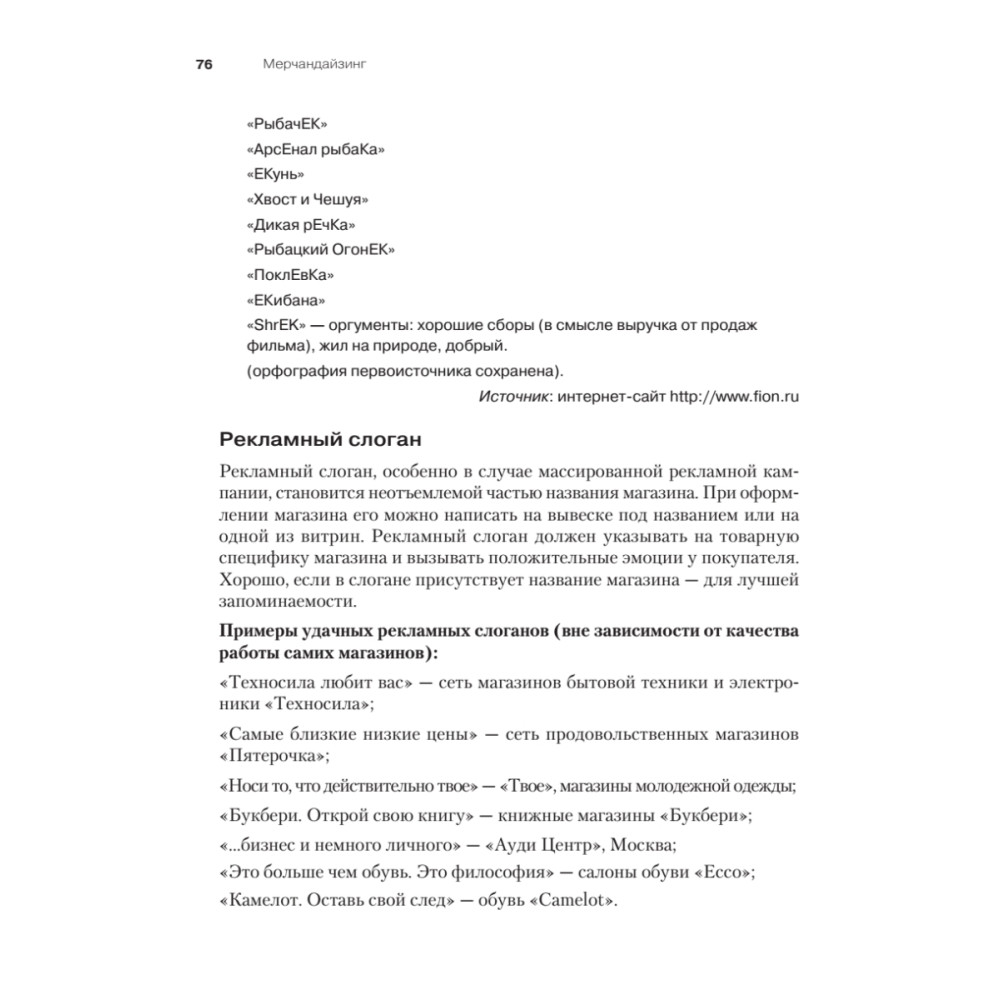«Мерчандайзинг» — вторая из трех книг, составляющих «Курс управления ассортиментом в рознице». Материал излагается в соответствии с авторским определении мерчандайзинга - это комплекс мероприятий, проводимых в магазине для того, чтобы покупателям было удобно, приятно и выгодно совершать покупку. В этом ключе авторы подробно рассматривают трехуровневую систему мерчандайзинга – внешний вид магазина, пространство торгового зала и выкладка товара на полках. В качестве практического материала приведены рекомендации по магазинам продуктов, бытовой техники, одежды, товаров для дома и книг. Книга написана для мерчандайзеров, также будет интересна владельцам и руководителям магазинов и сотрудникам любого уровня, отвечающим за управление ассортиментом.