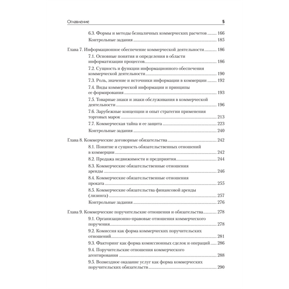 В пособии излагается комплекс вопросов, раскрывающих концепцию и сущность коммерции, ее место в воспроизводственных процессах, роль в удовлетворении потребностей, состав и содержание хозяйственных связей в коммерческой деятельности, современные формы и методы коммерческих расчетов, особенности и содержание информационного обеспечения коммерческой деятельности, организационно-правовые формы выполнения коммерческих договорных обязательств и поручительских отношений, сущность и способы уменьшения коммерческих рисков. Учебное пособие предназначено для студентов высших образовательных учреждений, обучающихся по специальностям 080301 «Коммерция (торговое дело)», 080111 «Маркетинг», 032401 «Реклама» в соответствии с ГОС ВПО второго поколения, по направлению подготовки 100700 «Торговое дело» по всем профилям в соответствии с ФГОС ВПО третьего поколения, другим экономическим специальностям, а также может быть полезно аспирантам, слушателям системы дополнительного образования, специалистам в области коммерческой, маркетинговой и рекламной деятельности. Допущено Учебно-методическим объединением по образованию в области коммерции в качестве учебного пособия для студентов высших учебных заведений, обучающихся по специальности 080301 «Коммерция (торговое дело)». Рекомендовано Учебно-методическим центром «Профессиональный учебник» в качестве учебного пособия для студентов вузов, обучающихся по специальностям 080301 «Коммерция (торговое дело», 080111 «Маркетинг».