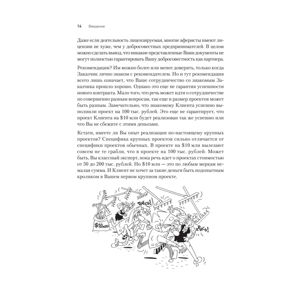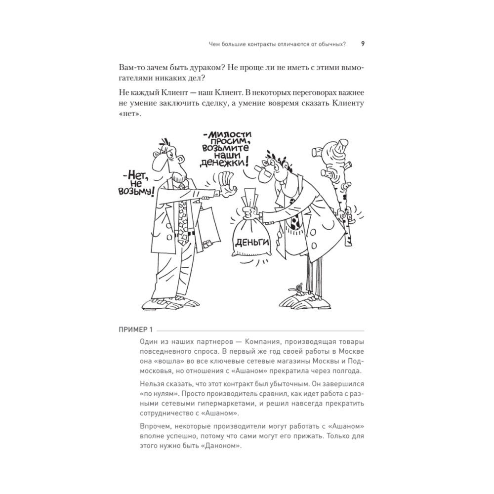 Имеет смысл приобрести книгу «Большие контракты» по количеству сотрудников в вашем отделе продаж, чтобы у каждого был свой экземпляр книги. Затраты на это будут небольшими, а дополнительный доход вашей компании может составить миллионы, десятки и сотни миллионов!