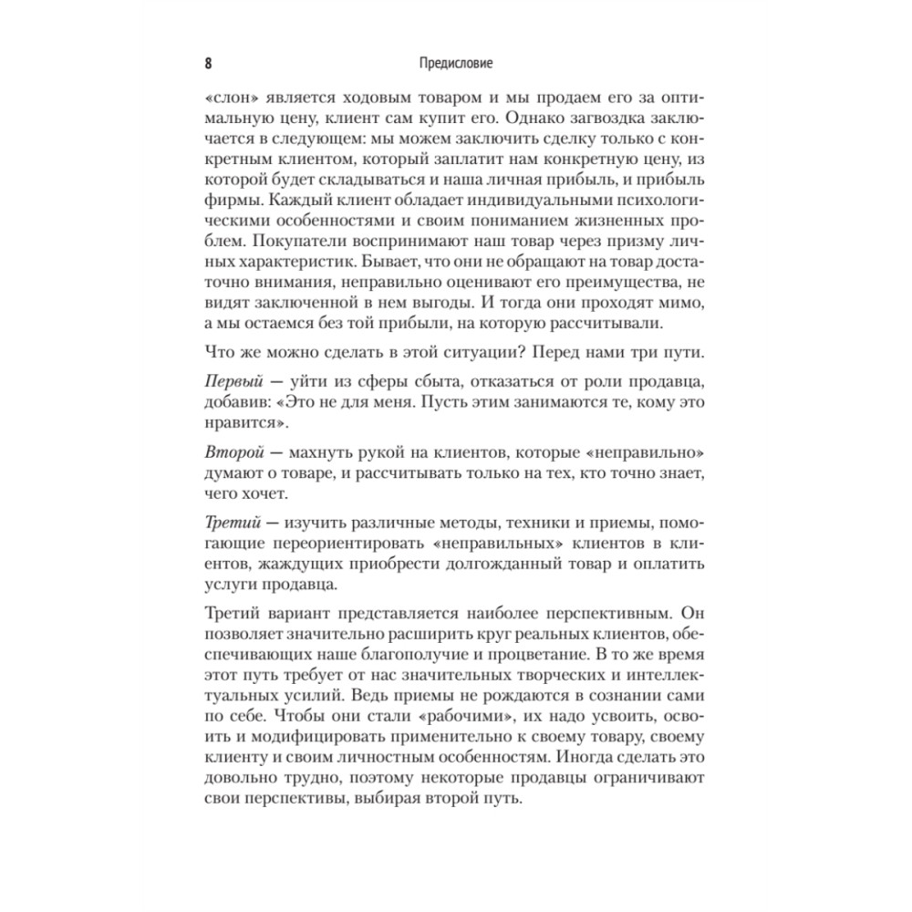 Книга предназначена для профессионалов, работающих в сфере сбыта: менеджеров по продаже, торговых агентов, продавцов-консультантов.