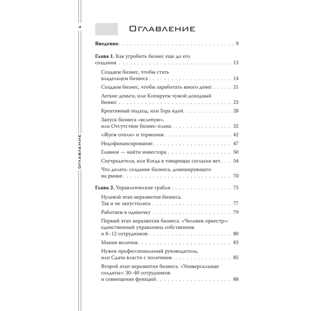 В этой книге автор постарался перечислить основные грабли, которые тормозят развитие или губят на корню большинство малых и средних бизнесов России. Если Вы при построении собственного дела не повторите хотя бы этих ошибок — Ваш бизнес уже сможет считаться образцово-показательным.