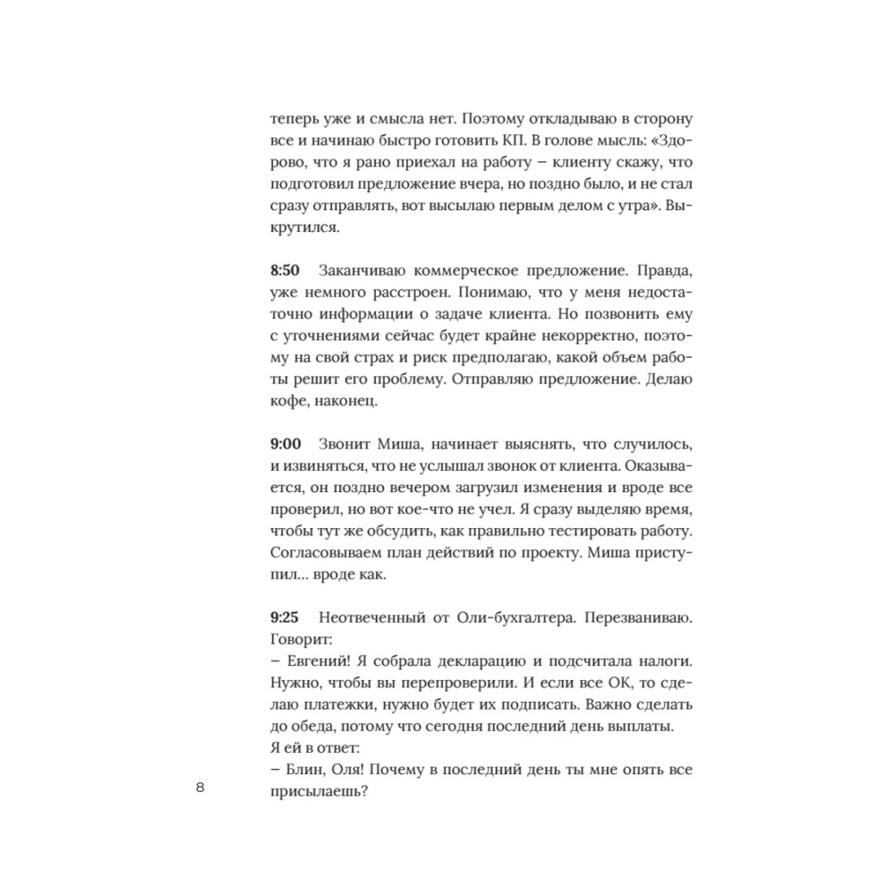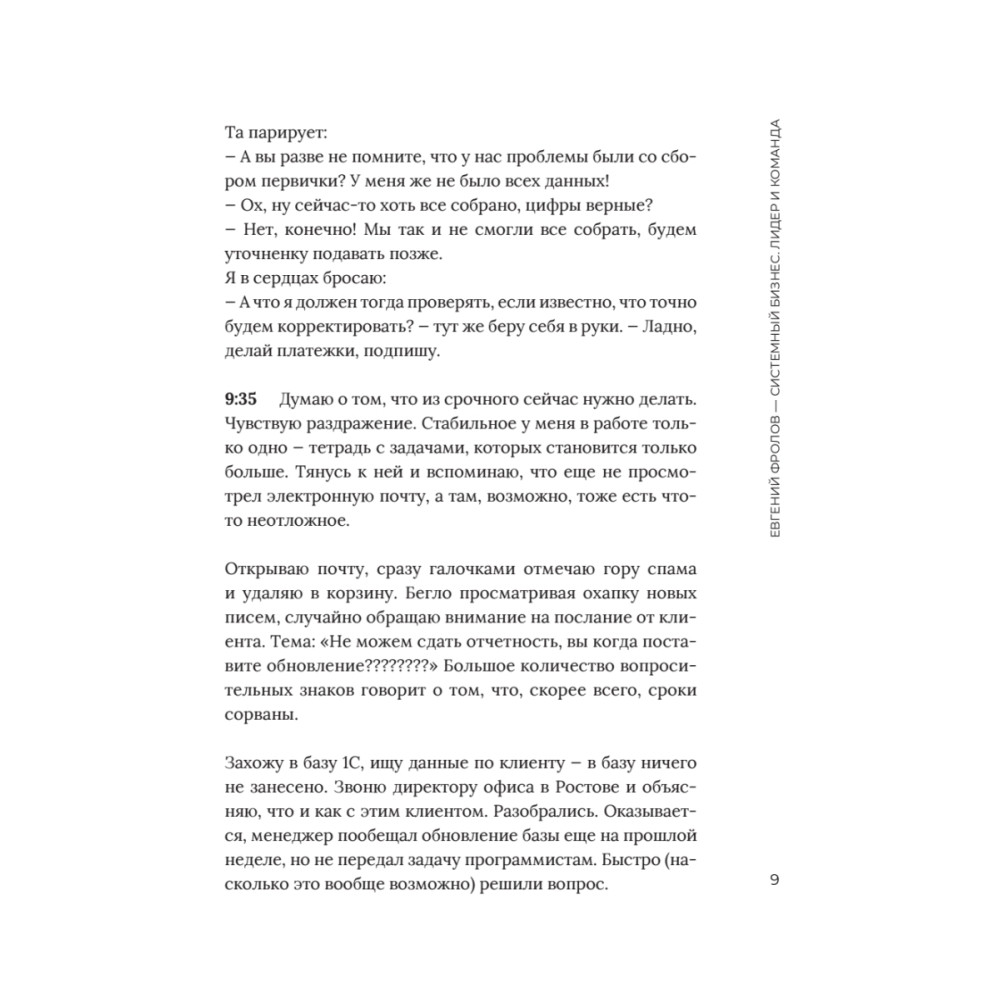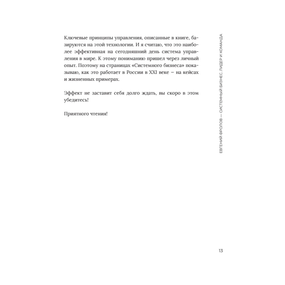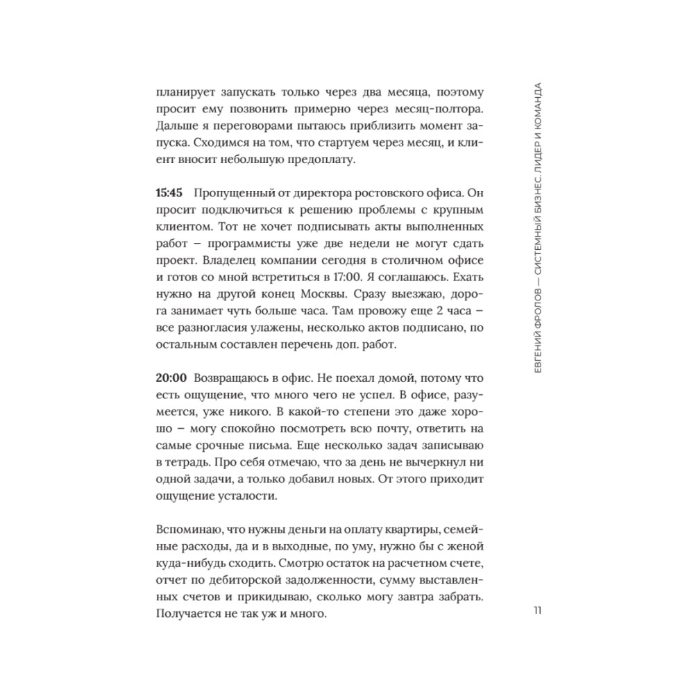 Многие предприниматели начинают свое дело, чтобы обрести свободу. Но через несколько лет они обнаруживают себя в заложниках у собственного бизнеса. Работы на 80 и более часов в неделю, деньги «сливаются» непонятно куда, обязательств выше крыши — некогда остановиться даже на время отпуска. Эта книга — первый шаг к вашей свободе в бизнесе. Автор — человек, который не просто прошел путь от рядового наемного сотрудника до собственника двух успешных компаний. Он выполняет в них роль владельца: занимается стратегическим развитием, открывает филиалы, развивает личный бренд и так далее. Другими словами, он не «тушит пожары» и не делает за своих сотрудников их работу. Почему? Потому что Евгений Фролов выстроил системный бизнес. На страницах этой книги вы найдете подробную карту пути, по которому вы также придете к такому результату. Не откладывайте чтение — сделайте первый шаг к системному бизнесу сейчас.