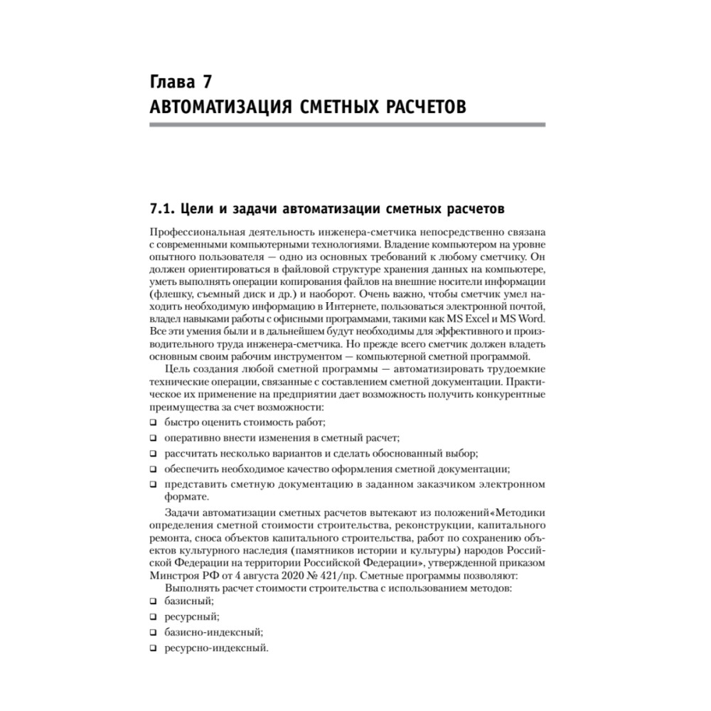 Пособие предназначено для самостоятельного обучения сметному делу в строительстве с учетом современных требований к уровню квалификации сметчиков, а также для подготовки специалистов сметного дела и инженеров-сметчиков. Может быть рекомендовано студентам строительных специальностей и слушателям курсов повышения квалификации. В новое 6-е издание книги внесены существенные изменения, связанные с реформированием сметного дела и обновлением сметно-нормативной базы. В пособии представлен материал от азбуки сметного дела до автоматизации сметных расчетов. Кратко изложены теоретические аспекты ценообразования и его особенности в строительстве. Приведена методическая и нормативная база определения стоимости строительной продукции. В книге даны состав сметной стоимости строительно-монтажных работ, основы реформирования ценообразования в строительстве, содержание сметной документации, правила исчисления и подсчет объемов работ, приведены примеры составления смет. В конце каждой главы в целях самопроверки читателя дается практический материал (задания, тестовые и контрольные вопросы), приводится рекомендуемая литература. Самоучитель написан преподавателями по сметному делу в строительстве и основан на чтении лекций и практическом опыте подготовки менеджеров и инженеров-сметчиков для строительной сферы в системе высшего профессионального образования и курсов повышения квалификации.
