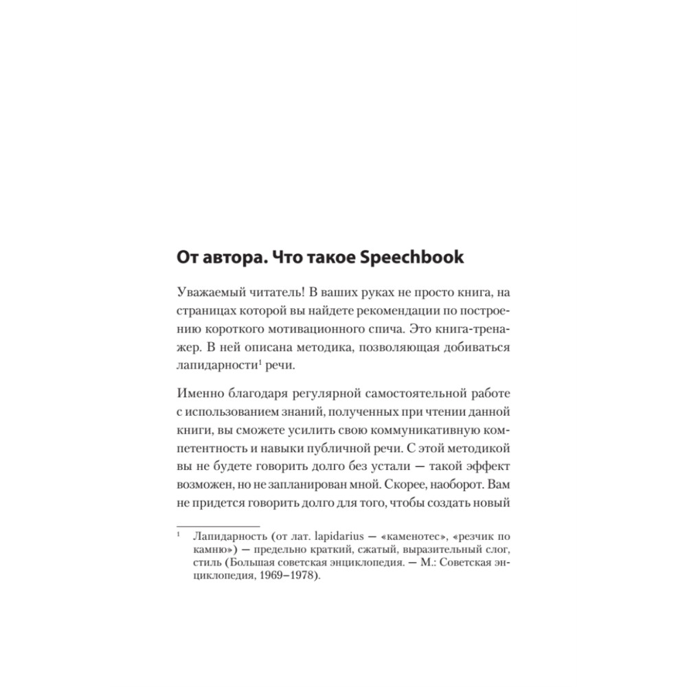 Эта необычная книга-тренажер поможет вам развить и довести до совершенства навыки публичной речи. Следуйте предложенной автором методике - и ваши выступления станут увереннее и убедительнее, сможете самостоятельно готовить и произносить мотивационные речи. Вы попробуете несколько стратегий проведения презентаций, научитесь применять методы недирективного воздействия на аудиторию, а специальные тренировочные карточки-заметки - своего рода "шпаргалки" к выступлению - помогут вам выстроить логику речи, не сбиться и не забыть о важных мелочах. Вы познакомитесь с упражнениями по тренировке речевого и дыхательного аппарата и многими фишками, которые используют профессиональные спикеры. Следуйте рекомендациям, чаще тренируйтесь, ведите записи (мы предусмотрели для этого специальные странички), экспериментируйте! Говорите ярче!