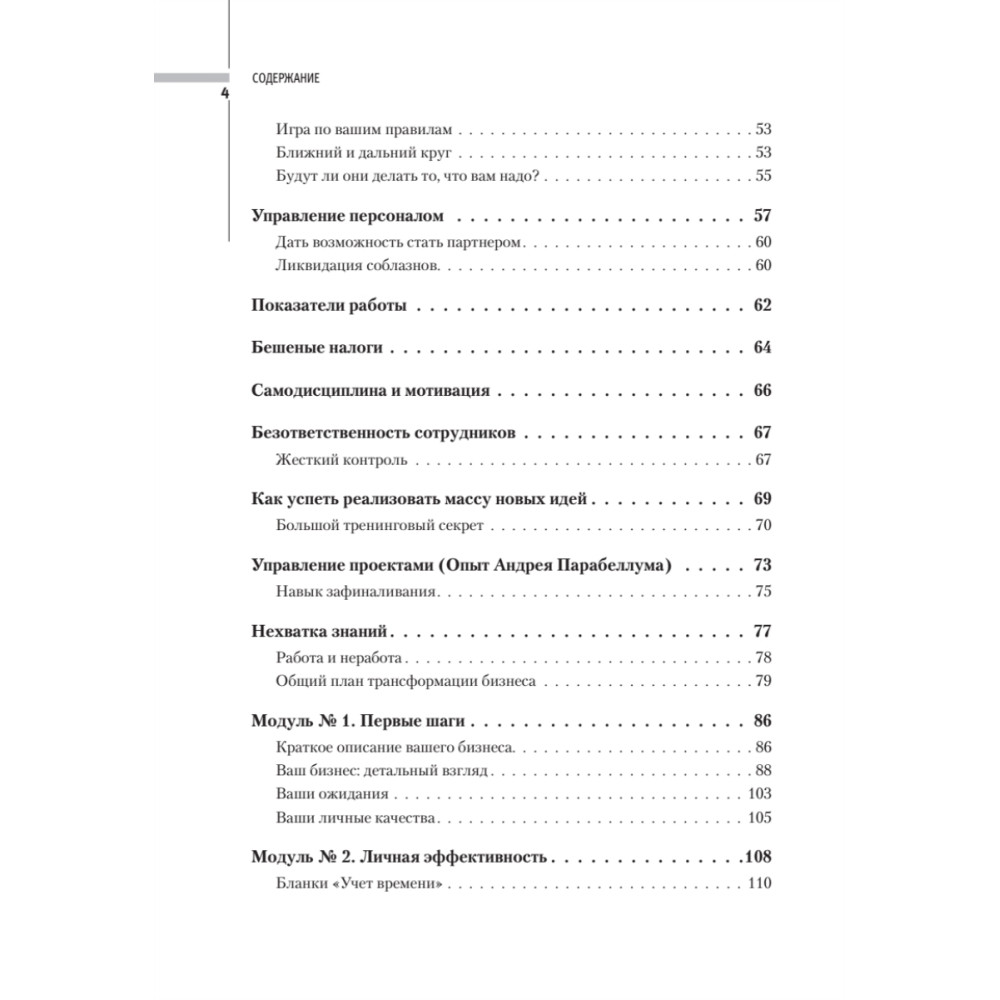 Книга содержит набор практических рекомендаций, помогающих решить 10 главных проблем бизнеса. И не просто решить их, а еще и заработать деньги, приобрести авторитет у сотрудников и клиентов, а также получить дополнительное свободное время. Весь материал основан на российских реалиях. Авторы делятся работающими приемами, уже давшими отличные результаты их многочисленным ученикам в различных сферах бизнеса. В книге представлены готовые алгоритмы и схемы работы, которые ускоряют и облегчают внедрение новых приемов. Ознакомившись с изданием, вы сможете грамотно организовать бизнес-процессы и получать больше прибыли и удовольствия от своей работы.