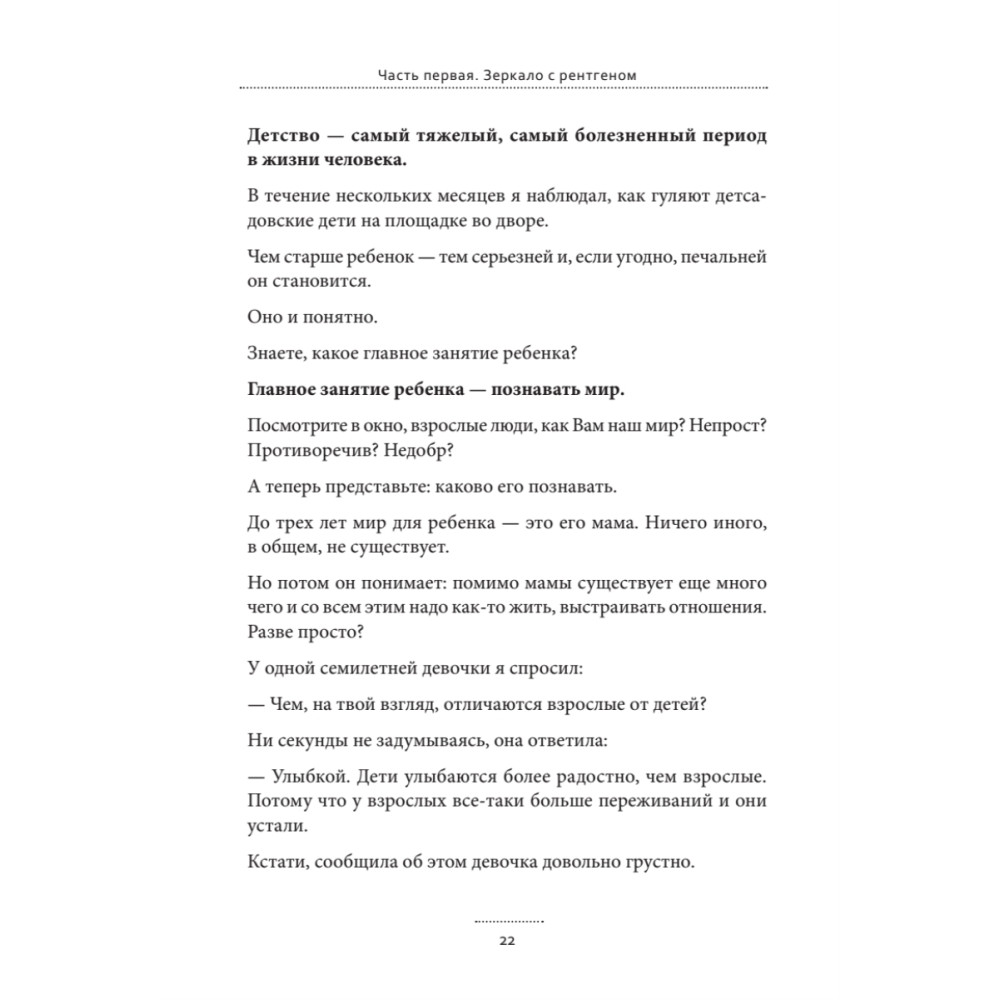 Популярный телеведущий, член Академии российского телевидения, писатель АНДРЕЙ МАКСИМОВ уже давно и хорошо известен как автор книг по психофилософии и воспитанию. Книга «Дети как зеркало. Как подружиться с собственным ребенком, меняясь самому» продолжает разговор, начатый в предыдущих изданиях. В ней Вы найдете весьма своеобразные рассуждения о том, как выcтроить отношения с собственным ребенком, и, что особенно важно, практические советы – как это сделать. Но эта книга принципиально отличается не только от предыдущих книг Максимова, но и от всех изданий, посвященных воспитанию. Мы много говорим о том, как воспитывать детей. А как должны воспитываться родители? Что они должны переделывать в самих себе, понимая, что дети зеркалят их? Как влияют родители на детей даже тогда, когда не думают об этом? Как воспитывать себя взрослому, чтобы его влияние не ребенка было позитивным? Вы понимаете, что рождение ребенка – главное событие Вашей жизни? Тогда новая книга Максимова для Вас. Она станет Вашим другом и советчиком. Она Вам поможет.