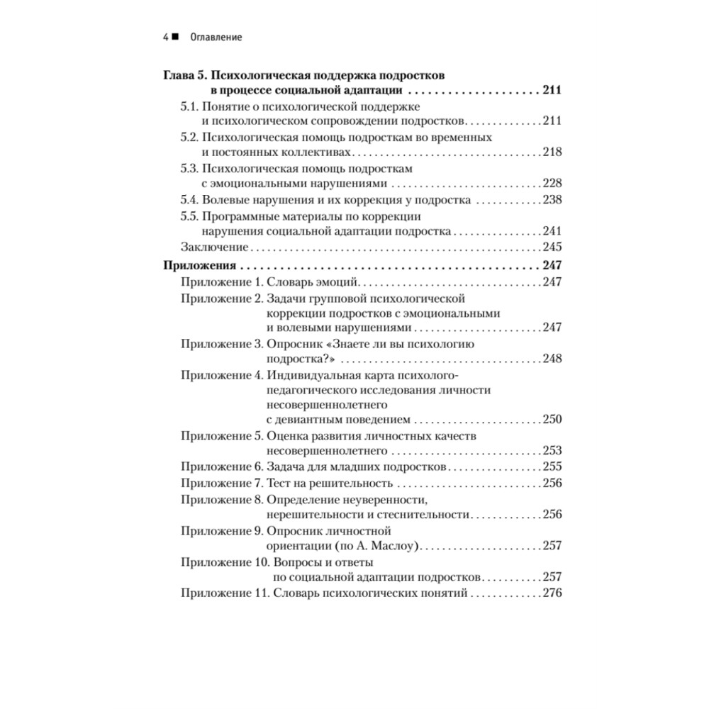 Книга посвящена очень важному аспекту воспитания подростка – его социальной адаптации. Особую роль социальная адаптация приобретает в наше непростое время – в эпоху перемен, когда даже взрослым сложно найти свою дорогу в обществе. Как помочь родителям понять возможности подростка в социальном приспособлении? Автор книги, опираясь на исследования и свой личный практический опыт работы и консультирования, освещает процесс социализации подростка и его результаты. В книге рассматриваются такие вопросы, как социальная адаптация подростков в школе, роль среды, родителей и сверстников в период взросления подростка, экономическая и юридическая социализация. Подробно рассмотрены и формы дезадаптации: воровство, ювенальное родительство, деструктивное поведение, вандализм, ксенофобия и экстремизм, хакинг и телефономания. Описываются способы психологической поддержки, коррекция нарушений. Книга предназначена для психологов, педагогов и родителей подростков.