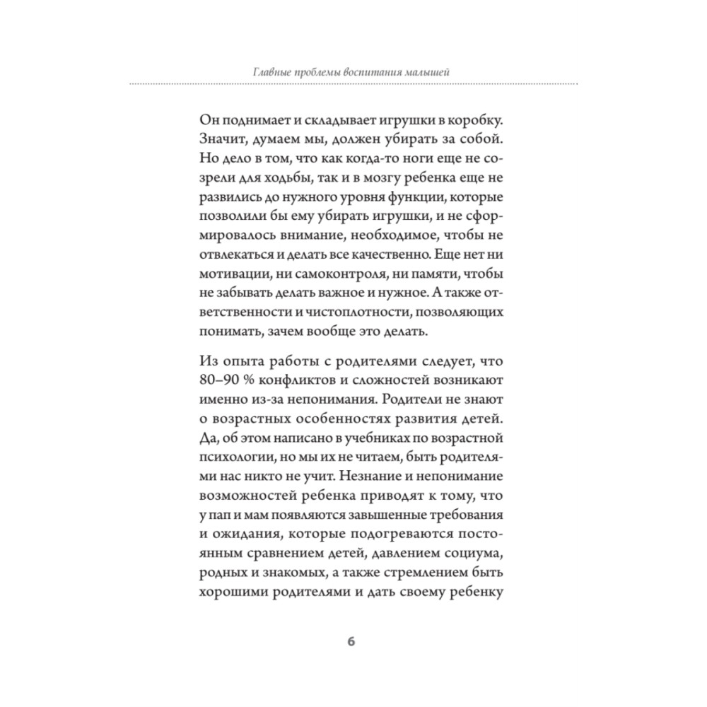 Автор провела исследование среди тысячи мам и выяснила, какие проблемы волнуют их больше всего. Проблем набралось ровно 23. Каждая из этих проблем легла в основу отдельной главы. Прочитав эту книгу, вы поймете, как происходит психологическое созревание ребенка, каким требованиям родителей он может соответствовать, а каким не может. Вы сможете снизить свои ожидания, увидеть незрелость вашего малыша, в вашей жизни станет больше радости и удовольствия.