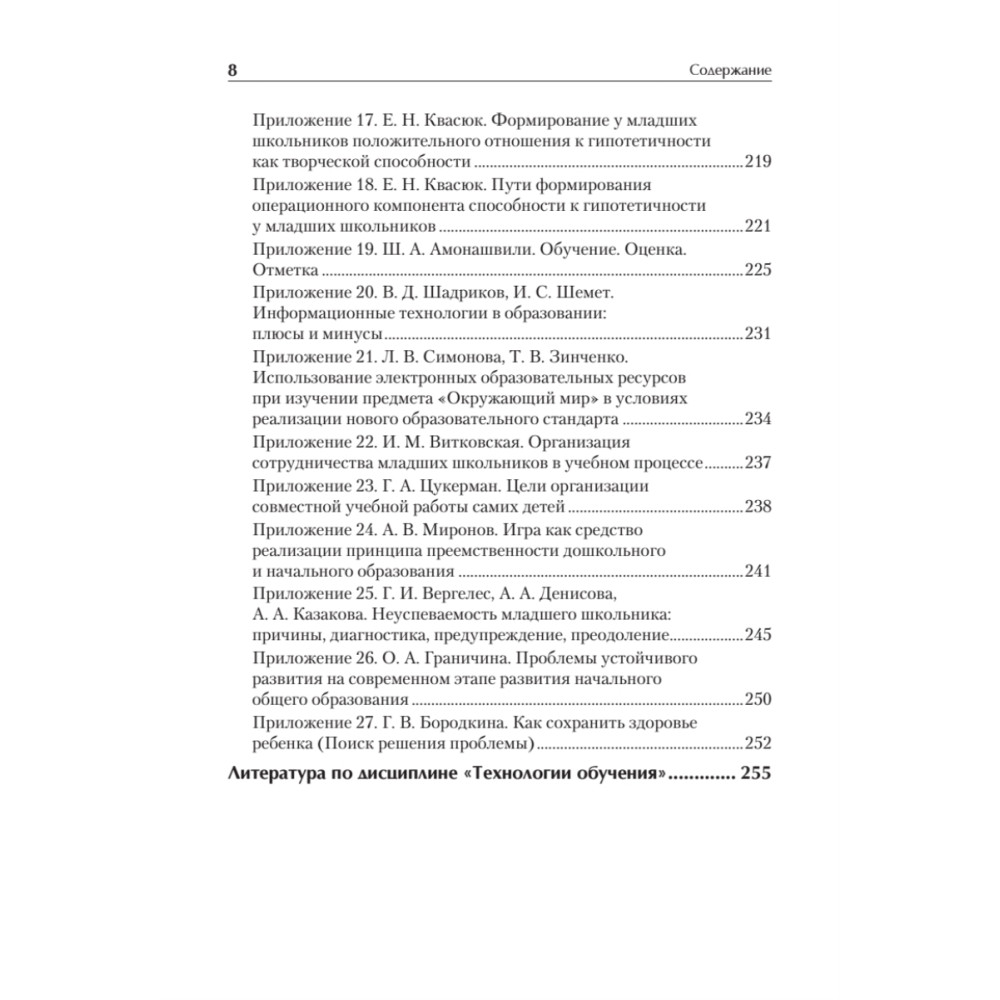 Учебно-методическое пособие подготовлено в соответствии с Федеральным государственным стандартом по направлению подготовки "Педагогическое образование". В пособии представлены технологии обучения младших школьников, без овладения которыми выпускник бакалавриата не может стать успешным учителем начальной школы. Учебно-методическое пособие адресовано как студентам бакалавриата, готовящим себя к профессиональной деятельности в сфере начального образования, так и учителям начальных классов, всем, кто заинтересован в повышении качества начального образования.
