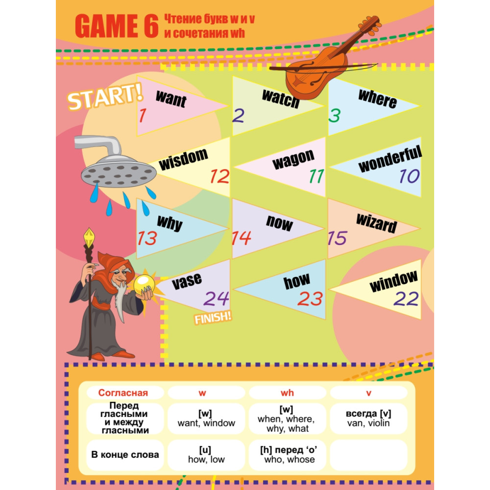 Евгения Карлова — автор учебников-бестселлеров для взрослых и детей — предлагает серию лексических и грамматических игр в помощь изучающим английский язык. С чего начинается английский? С чтения. А в русском и английском языке правила чтения сильно различаются. Эта серия игр посвящена чтению согласных и их сочетаний: th, ck, ph, ch, sh, wh. Возьмите кубик, фишки и начинайте чи… играть. Прогулявшись по увлекательным игровым полям, ребенок усвоит правила чтения согласных и их сочетаний и выучит множество новых слов. А кроме того, вся семья проведет за игрой немало приятных минут. Помните: английский сближает! Игра подходит для семейного обучения, а также является методическим пособием для занятий английским языком.