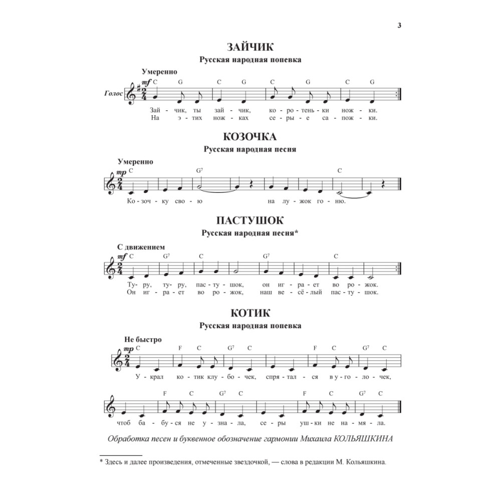 В учебное пособие композитора и педагога Михаила Александровича Кольяшкина включены разнообразные по тематике, характеру и содержанию известные русские, венгерские, чешские и польские народные песни для детей дошкольного, младшего и среднего школьного возраста в его обработке. Они легко и быстро запоминаются детьми, развивают в них музыкальные способности, прививают интерес к народной музыке, любовь к природе, являются источником познания окружающего мира. Учебное пособие предназначено для музыкальных руководителей детских садов, общеобразовательных школ, домов творчества, театров, для преподавателей школ искусств, музыкальных и хоровых школ.