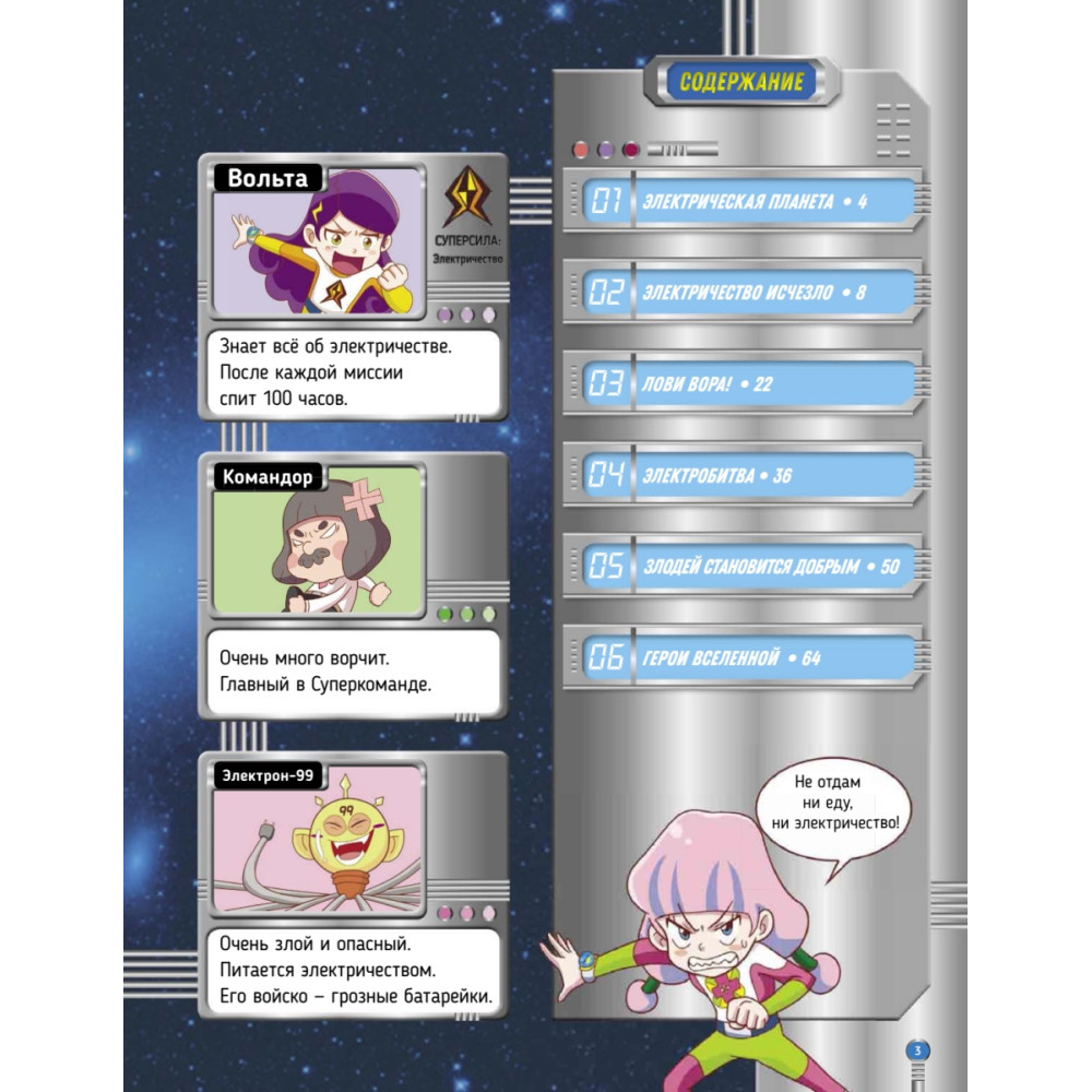 На Землю напал опасный воришка Электрон-99! Он намеревается захватить всё электричество! Как хорошо, что у нас есть надёжная защита — Суперкоманда Земли. Руф, Флинт, Тера, Вольта и Командор разберутся с этим опасным преступником! Давай вместе с ними спасём нашу планету и узнаем, какие бывают электростанции, что такое электрическая цепь, и как сделать супер-доспехи из диэлектрика! Присоединяйся к Суперкоманде. Наша миссия начинается!