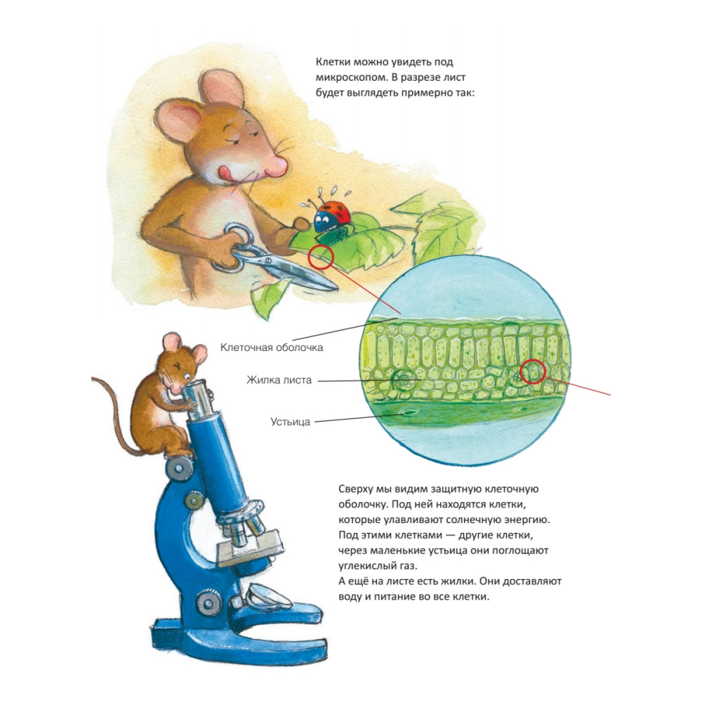 Все вокруг состоит из атомов, как же получается, что одни предметы живые, как жуки или бабочки, а другие - неживые, как камень? С таким вопросом пришла к умному Мышонку его подружка Божья Коровка. Мышонок рассказывает ей, и конечно, любопытным ребятам тоже, - что такое клетки, какими они бывают и что делают; - как зародилась жизнь на Земле; - как на нашей планете появлялись новые виды животных и растений; - как из всего двух клеточек развивается человек. Книга для детей дошкольного и младшего школьного возраста.