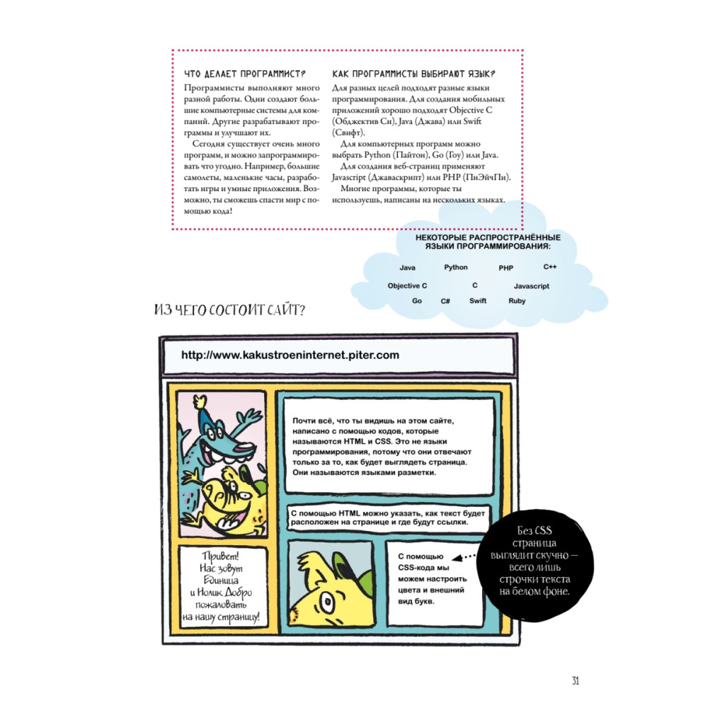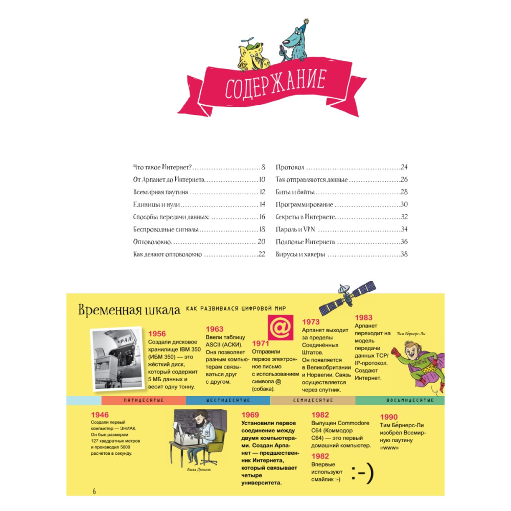 Почти треть человечества пользуется Интернетом каждый день, но даже половина из них не знает, как именно всё устроено! Благодаря этой книге ты сам исследуешь потаённые уголки Интернета. Ты выяснишь, что называют всемирной паутиной, как Интернет попадает в дом и кто им управляет. А ещё узнаешь, зачем нужны языки программирования, кто такие бит и байт, и как попасть в секретный туннель Интернета. Единица и Нолик приглашают тебя отправиться с ними в путешествие по захватывающему миру Интернета!