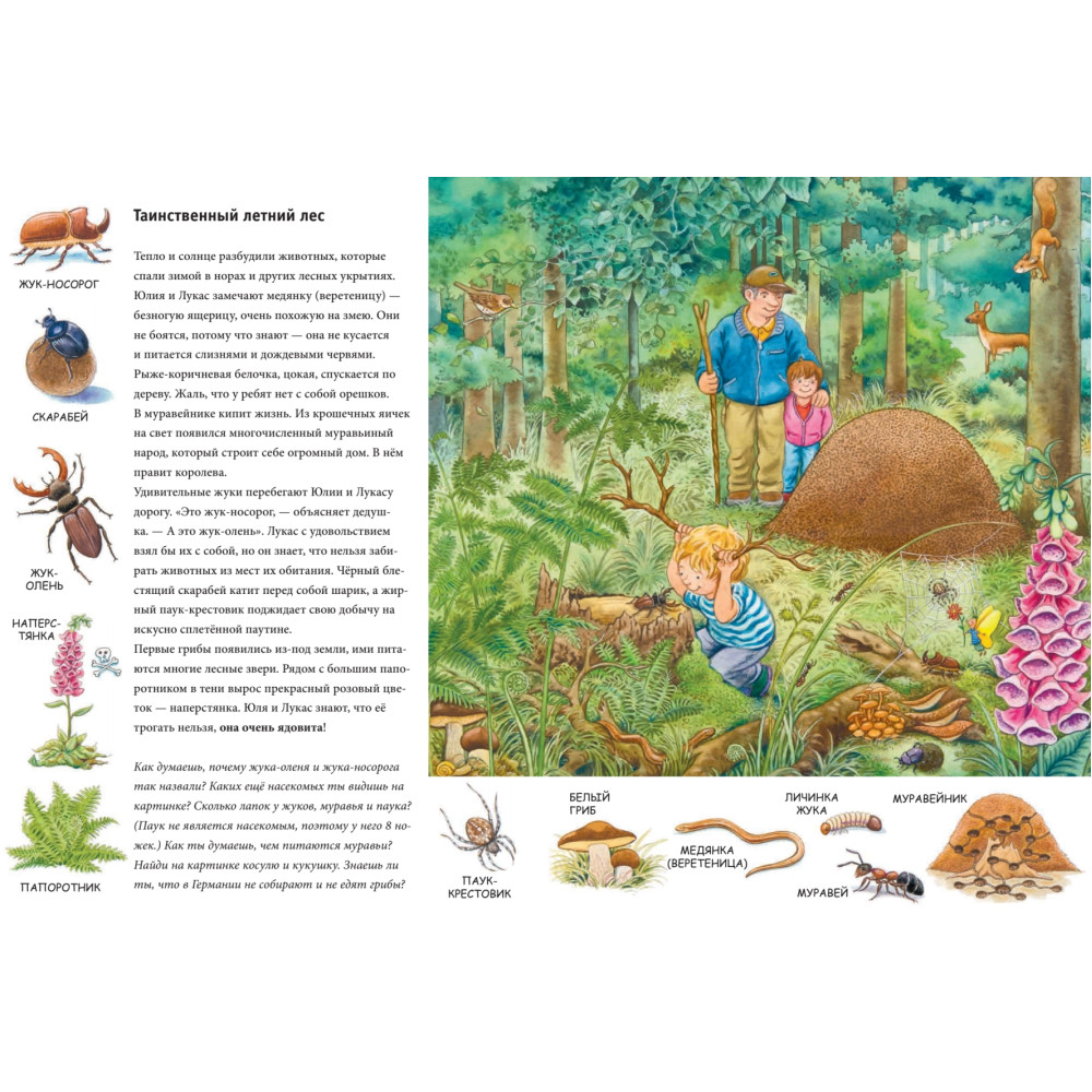 В новой серии «Находилки-развивалки» выходят книги, посвящённые четырём временам года, предназначенные для детей от двух лет. Они познакомят малышей с окружающим миром, помогут развить детскую наблюдательность, внимание и любознательность. В третьей книге серии — «Лето. Находилки-развивалки» — дети познакомятся с летними явлениями в природе, узнают о летних праздниках и традициях России и Германии. Возьмите книгу на прогулку. Она поможет вам узнать много нового: вы сможете рассказать ребёнку о летних цветах, насекомых, съедобных и лекарственных растениях. А ещё с помощью этой книжки можно побывать на пруду, в лесу, на болоте, в саду, на лугу, на море и даже на рыбалке. Книга предназначена для семейного чтения и для работы в ДОУ. Развивает внимательность, зрительную память и прекрасно готовит ребёнка к школе. Текст этой книги написала известная немецкая писательница Бьянка Минте-Кёниг. Она родилась в Берлине, а сейчас живет в собственном доме недалеко от Брауншвейга и природного заповедника. Несмотря на то, что она самый настоящий профессор педагогики средств массовой информации и методики преподавания литературы, Бьянка работает в детском театре и руководит различными проектами для детских садов и театральных обществ. Дополнительную информацию об авторе можно узнать на её страничке www.biankaminte-koenig.de Рисунки нарисовал известный немецкий художник Ханс-Гюнтер Дёринг. С 1991 года он иллюстрирует книги для детей и школьников. Больше всего он любит рисовать природу. В 2005 году художник был отмечен премией за вклад в детскую и юношескую литературу об окружающей среде. Дополнительную информацию об авторе можно найти на его страничке www.hansguentherdoering.de
