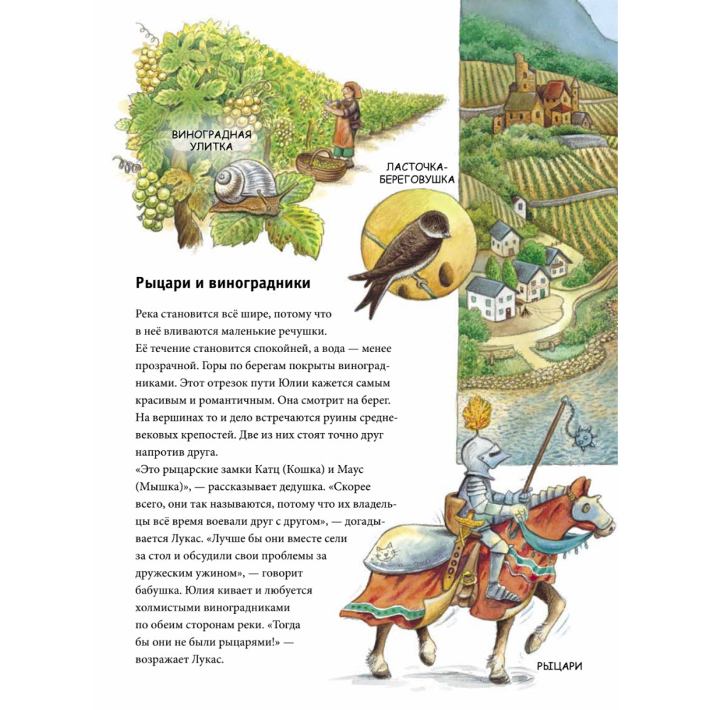 Маленькие читатели, полюбившие серию сезонных «Находилок-развивалок», обязательно оценят новые книжки, в которых Юлия и Лукас путешествуют по морю, реке и лесу. Они предназначены для семейного чтения и для работы в ДОУ, развивают внимательность, зрительную память и прекрасно готовят ребёнка к школе. Прогулка по реке на теплоходе — это увлекательное приключение для Юлии и Лукаса. Ведь во время поездки можно узнать, увидеть и пережить много нового. Вместе с ребятами вы пройдете по системе шлюзов, увидите романтичные виноградники, выплывающие из тумана ландшафты пойменных лесов, заливные луга и узнаете, как работают электростанция и порт. В книге есть карточки для вырезания и игры. Текст этой книги написала известная немецкая писательница Бьянка Минте-Кёниг. Она родилась в Берлине, а сейчас живет в собственном доме недалеко от Брауншвейга и природного заповедника. Несмотря на то, что она самый настоящий профессор педагогики средств массовой информации и методики преподавания литературы, Бьянка работает в детском театре и руководит различными проектами для детских садов и театральных обществ. Дополнительную информацию об авторе можно узнать на её страничке www.biankaminte-koenig.de Рисунки нарисовал известный немецкий художник Ханс-Гюнтер Дёринг. С 1991 года он иллюстрирует книги для детей и школьников. Больше всего он любит рисовать природу. В 2005 году художник был отмечен премией за вклад в детскую и юношескую литературу об окружающей среде. Дополнительную информацию об авторе можно найти на его страничке www.hansguentherdoering.de