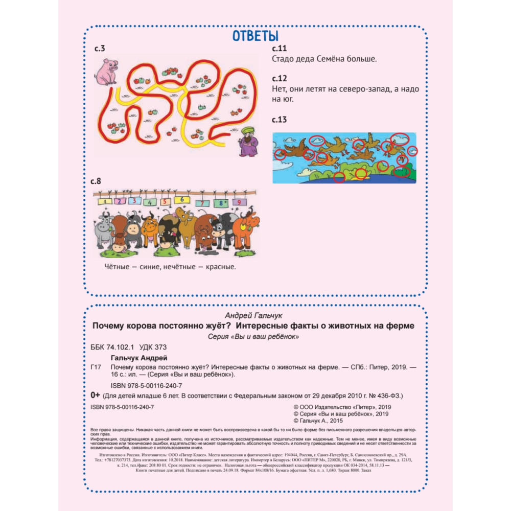 Почему куры не летают? Почему у поросят нос пятачком, а хвост крючком? Почему гусь выходит сухим из воды? Почему корова бодается? В этой книге ребёнок найдёт ответы на все свои "почему" о животных на ферме и узнает ещё много тайн животного мира. Яркие картинки и забавные задания помогут надолго занять вашего юного фермера, а в конце книги его ждёт сюрприз -- бумажная поделка-корова, которую можно собрать самому!