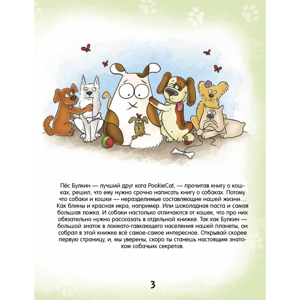 Вы слышали о PookieCat? Этот замечательный оранжевый кот писал книгу о своих сородичах — «Почему кот мурлычет и ещё 100 ответов на детские „почему“ про кошек от PookieCat». Его друг — пёс Булкин — решил, что теперь он просто обязан написать книгу о собаках. Ведь он знает о них всё! А теперь и вы узнаете все собачьи секреты. Открывайте первую страницу — и познакомьтесь с собаками поближе.