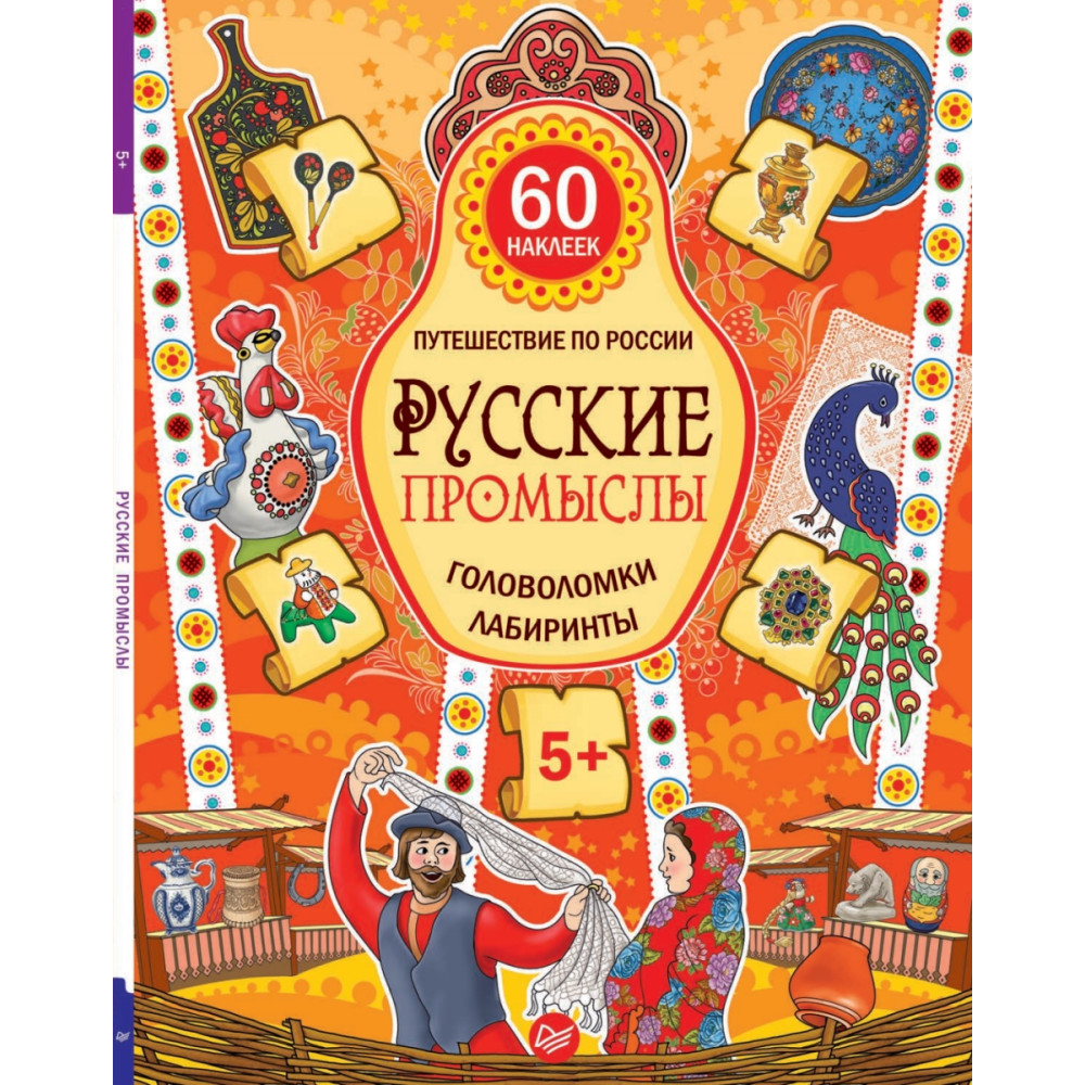 Славится Россия своими мастерами-умельцами. Русская матрёшка, дымковская игрушка, гжель, хохлома, деревянные ложки и расписные самовары, ларцы и шкатулки! Каждый путешественник находит тут сувенир по душе и непременно увозит с собой частичку земли русской. Как из бересты делали посуду на Руси? Из чего плели лапти? Чем отличается паутинка от палантина? Что такое писанка? Решай головоломки, проходи лабиринты, выполняй задания с наклейками. Играй и изучай культуру великой России.
