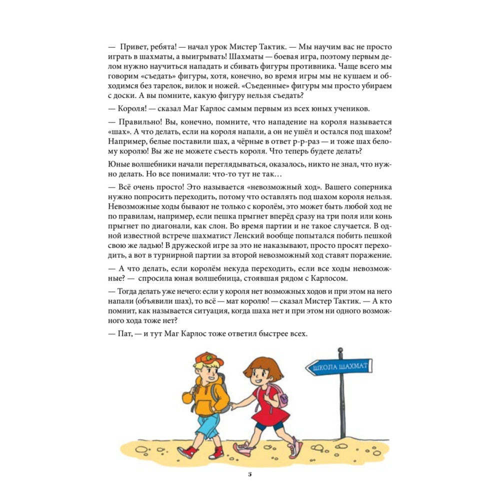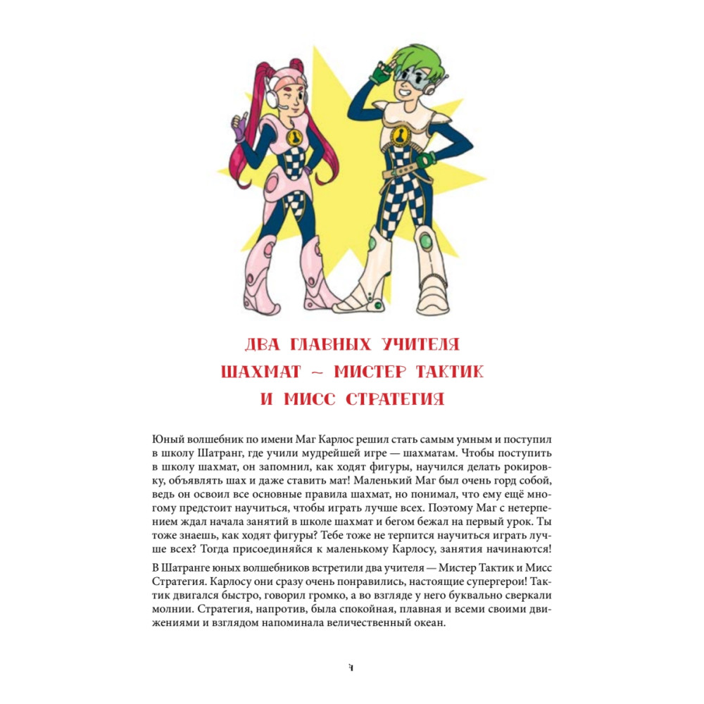 Эта книга — продолжение бестселлера "Шахматы для детей. Обучающая сказка в картинках". В ней уже знакомый детям юный волшебник по имени Маг Карлос успешно поступил в шахматную школу волшебства. Он уже запомнил, как ходят фигуры, научился делать рокировку, объявлять шах и даже ставить мат! В новых приключениях два учителя-супергероя покажут волшебнику, как правильно продумывать тактику и стратегию игры! Вместе с ребёнком пройдите этот увлекательный путь в мир шахмат. Вы узнаете: • как развивать тактику и стратегию; • что такое "вилка"; • зачем в шахматах нужен шашлык; • что такое эндшпиль и многое другое. БОНУС: шахматные задачки с наклейками! Мария Фоминых — международный гроссмейстер, чемпионка России и Европы среди девушек, автор детских книг по шахматам, тренер, организатор шахматных турниров, журналист. Книга предназначена для занятий с детьми старшего дошкольного возраста дома и в студиях.