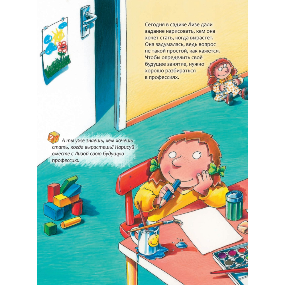 В красочных иллюстрациях Ральфа Бутчкова есть масса неточностей, которые тебе предстоит исправить, юный читатель! Ведь мы уверены, ты уже достаточно большой, чтобы догадаться обо всем сам, а если нет, смело проси помощи у родителей и бабушек с дедушками - смеяться вместе гораздо приятнее! Художник нарисовал в точности то, что рассказала ему маленькая выдумщица Лиза! С ней постоянно приключаются самые необыкновенные истории: в духовке Лизиной мамы живет Снежный человек, на дедушкиной ферме овцы носят вязаные свитера, а садовник возле ее дома выращивает лампочки! В этой замечательной находилке Лиза расскажет тебе о том, какие бывают профессии, и км она хочет быть. Присоединяйся!