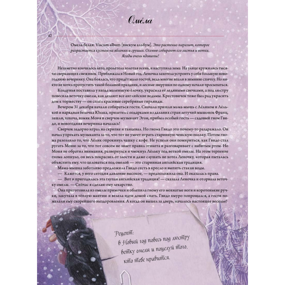 Почему ромашка – королева всех трав? Где растёт мята? Из чего сделать примочку, чтобы не болела лапа? Переехав в новый дом, добрая колдунья Леночка знакомится с соседями — мышатами Лёликом и Лёлькой. Увидев однажды у Леночки волшебную книгу трав, мышата умоляют рассказать о полезных травах из книги. Вместе с мышатами ты узнаешь, почему крапива вовсе не жжётся, как из василька приготовить окрашивающий шампунь и почему царские свечки, коровяк, медвежье ухо и царский скипетр — это одно и то же. Вы отправитесь с Леночкой за полезными травами по всему миру на её волшебной… зубной щётке. Для детей среднего школьного возраста.
