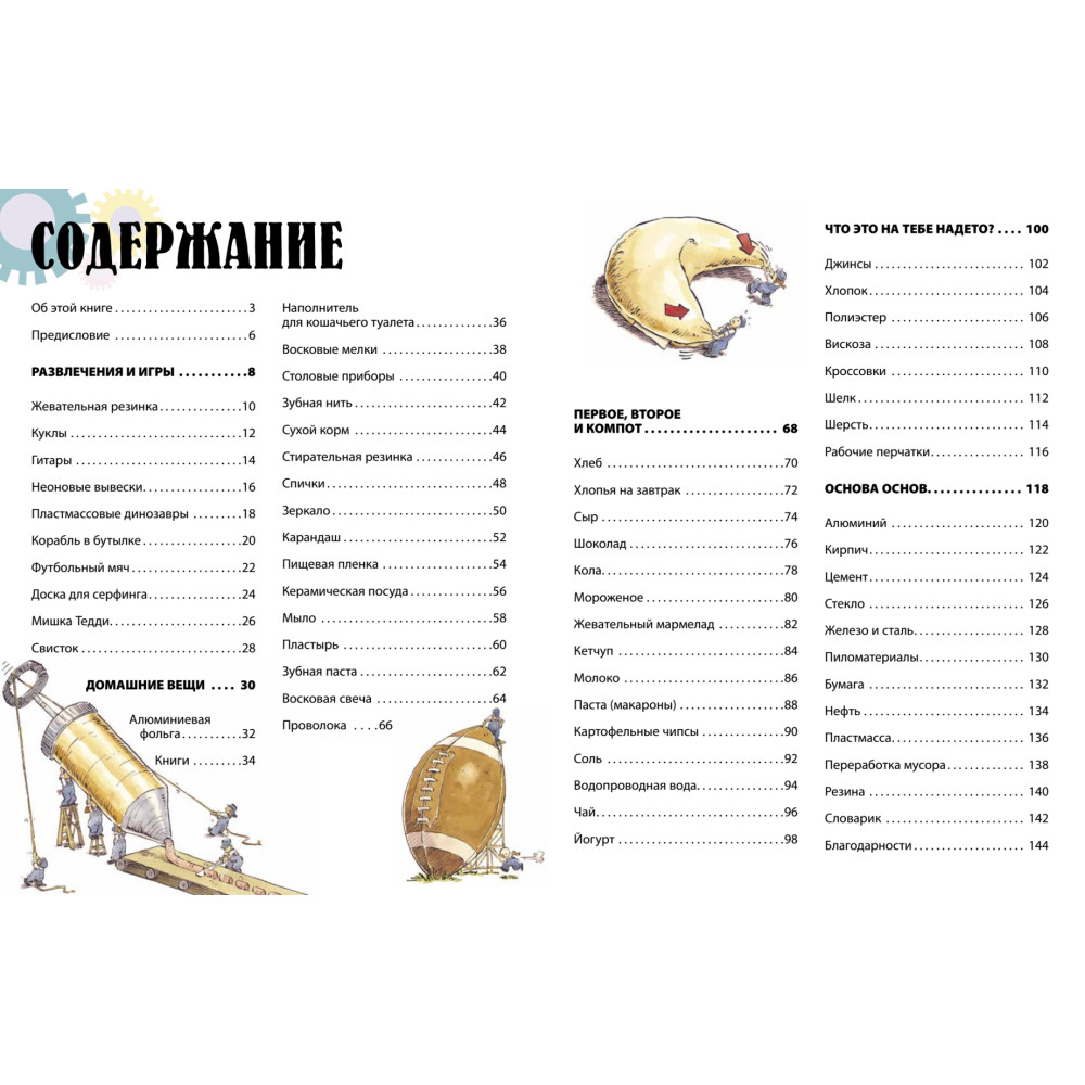 Знаете ли вы, во что может превратиться обыкновенное дерево? В массу всего: в гитару, в карандаш, в стул, в бумагу, в ткань… Несколько веков назад и дети, и взрослые прекрасно знали, как создаются самые разные вещи. Люди сами готовили себе пищу, а для этого выращивали растения и разводили животных. Пряли шерсть для одежды и шили её. Делали игрушки из дерева и ткани. Когда для производства стали использовать машины, люди стали всё меньше разбираться в устройстве того, что их окружало. А ещё — делать вещи из того, из чего раньше никому не приходило в голову. К примеру, из нефти, которая может превратиться не только в топливо, но и в одежду, игрушки, пуговицы, пищевую плёнку. Благодаря этой книге вы шаг за шагом пройдёте все этапы производства множества всем необходимых вещей. Побываете на фабриках и заводах, узнаете, как добывают нефть и соль, посмотрите, как делают продукты питания, одежду и ещё множество всего, что мы используем каждый день. Приоткройте дверь в волшебный мир превращений простых материалов в сложные предметы — и вы поразитесь тому, как много чудес скрывается повсюду!
