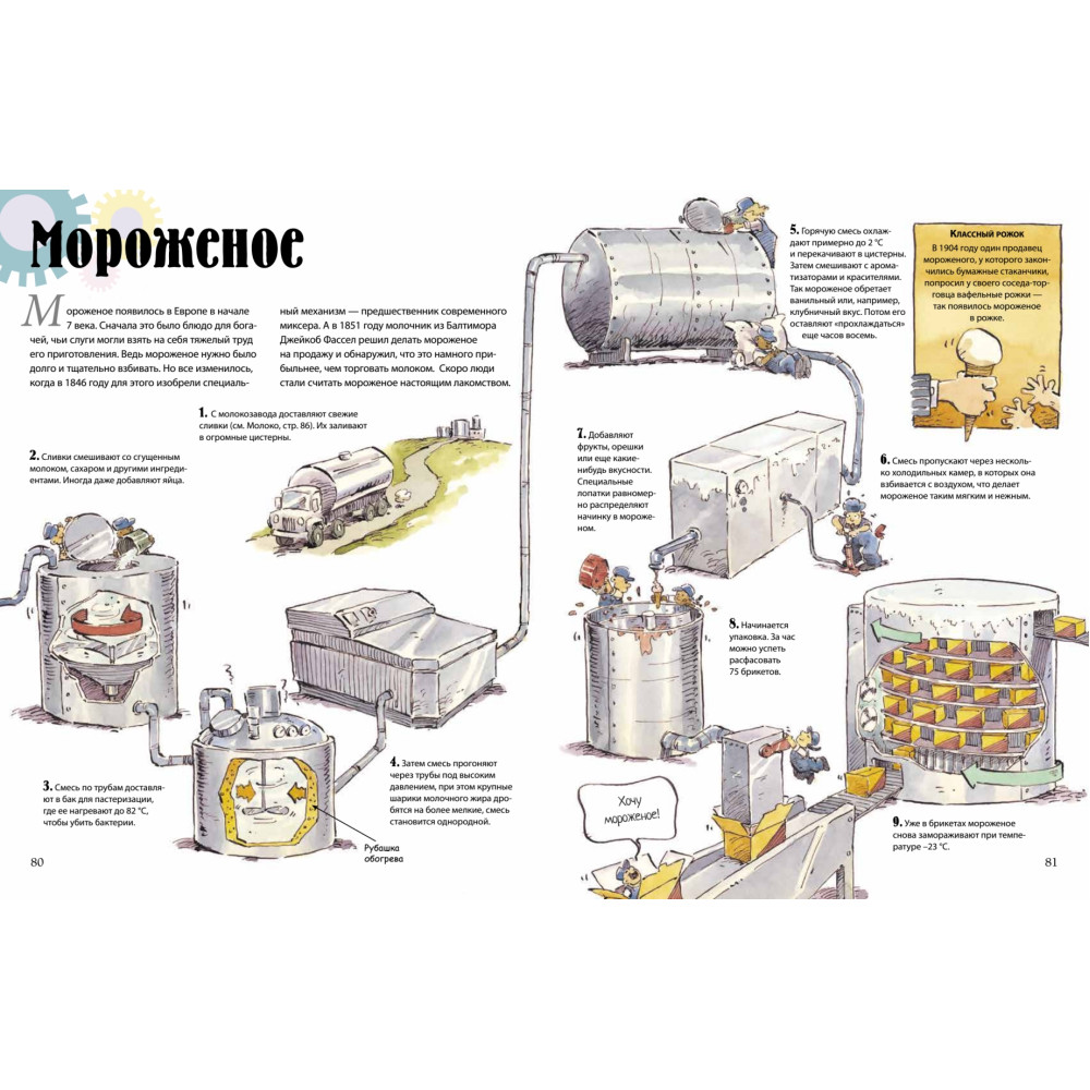 Благодаря этой книге вы шаг за шагом пройдёте все этапы производства множества всем необходимых вещей. Побываете на фабриках и заводах, узнаете, как добывают нефть и соль, посмотрите, как делают продукты питания, одежду и ещё множество всего, что мы используем каждый день.