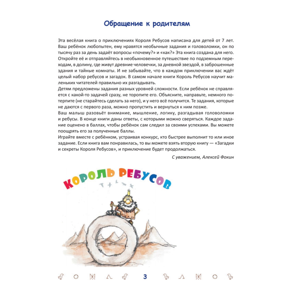 Король Ребусов приглашает вас в волшебную страну, полную загадок и тайн. В страну, где вместе с ним живут его друзья – учёные волшебники, изобретатели, путешественники, гномы, а также всегда улыбающиеся маленькие человечки. На страницах книги вы встретитесь с множеством забавных историй, таинственных секретов и необычных ребусов. Откройте ее и разгадывайте вместе с Королём Ребусов.
