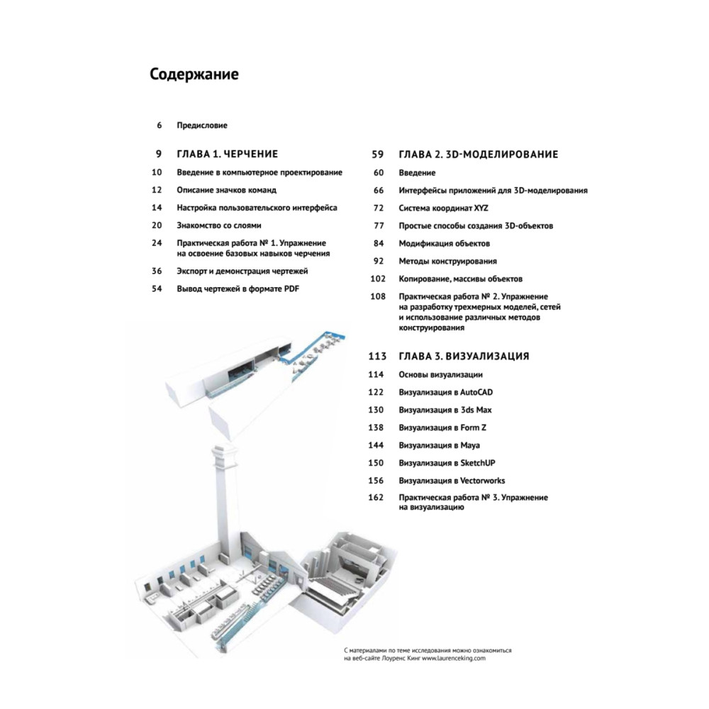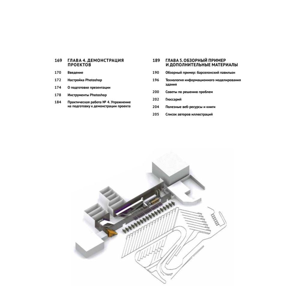 Сегодня большая часть архитектурных проектов разрабатывается при помощи CAD, различных программ компьютерного дизайна и моделирования. Как студентам, так и практикующим профессионалам приходится осваивать технологии работы с такими программами. Эта книга описывает наиболее полезные для архитекторов и дизайнеров функции AutoCAD, SketchUp и Vectorworks, а также 3ds Max, Maya, Form Z и Photoshop. Подробные объяснения для удобства сопровождаются наглядными примерами конкретных проектов и скриншотами.