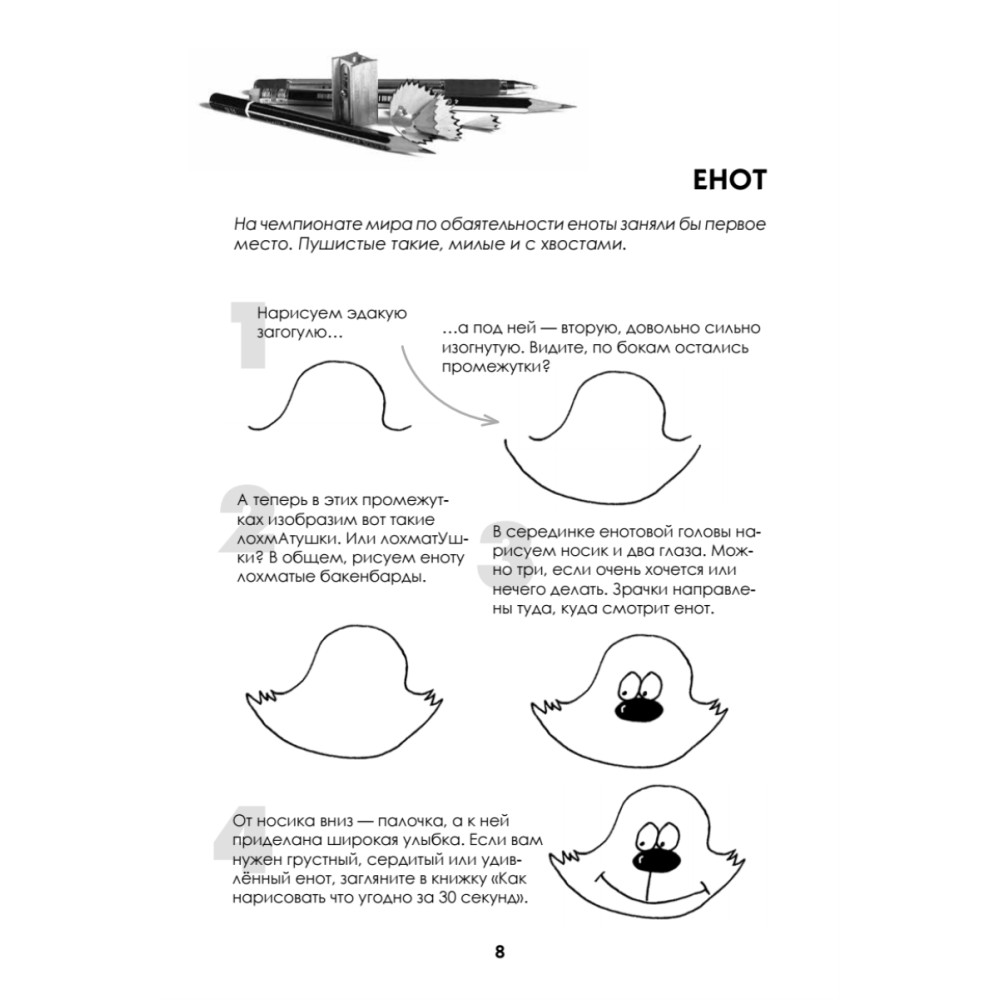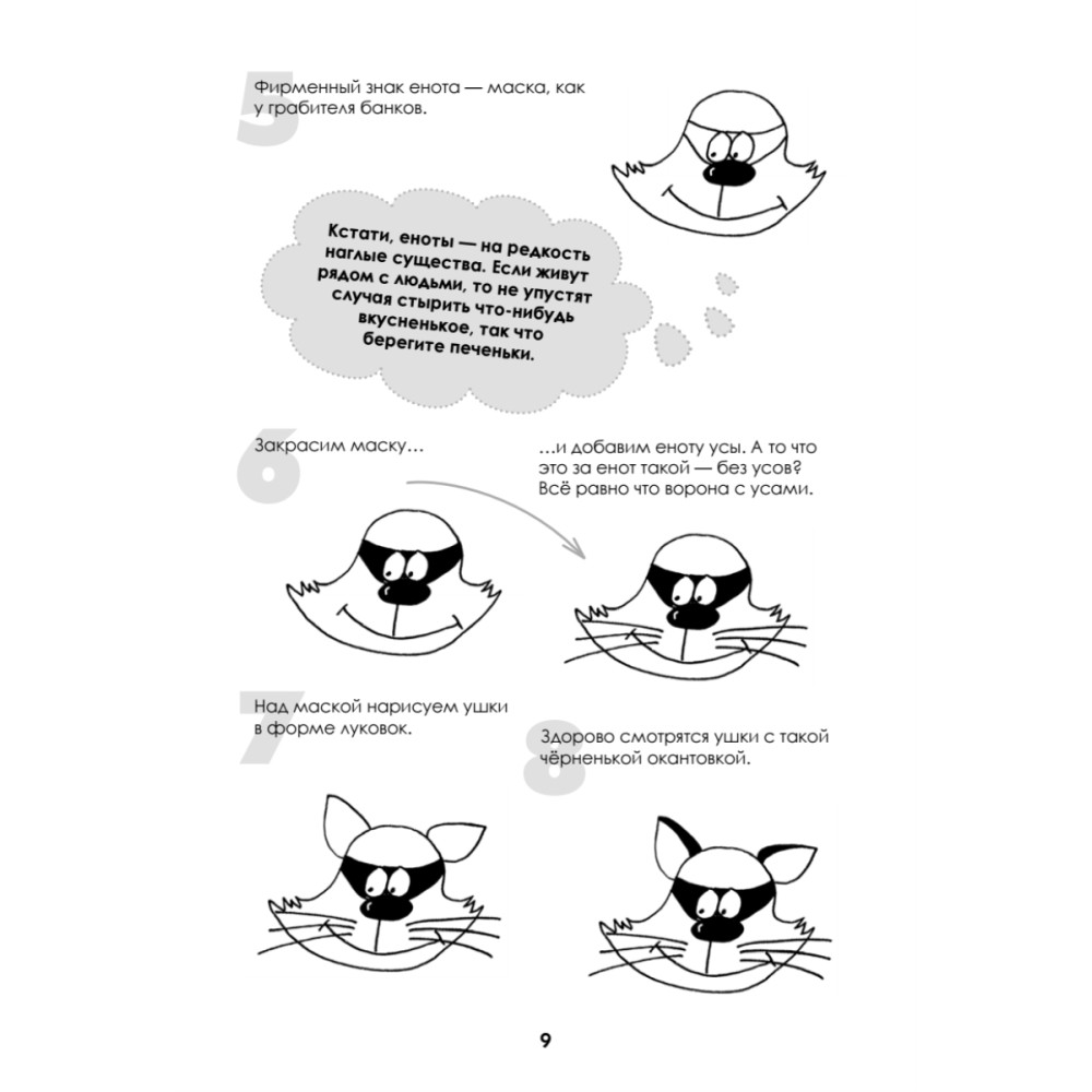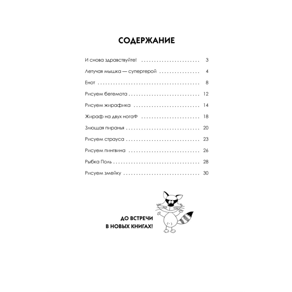 Как нарисовать целую звериную компанию? Очень просто — повторяйте за нами, и вы сами удивитесь, насколько это легко. Хитрый енот и летучая мышка, бегемот и пингвин — рисуйте их вместе с детьми по нашим урокам и сочиняйте весёлые истории!