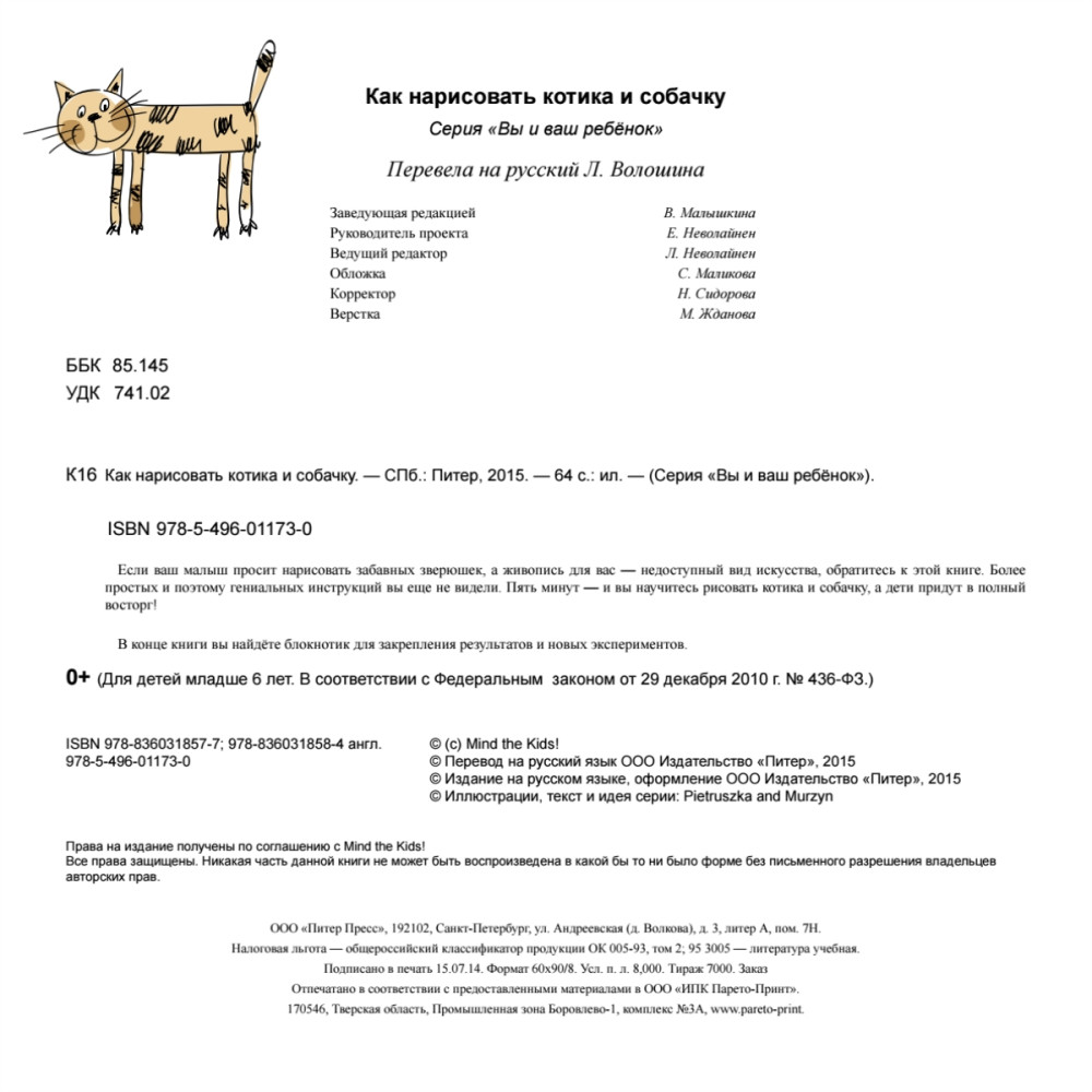 Если ваш малыш просит нарисовать забавных зверюшек, а живопись для вас — недоступный вид искусства, обратитесь к этой книге. Более простых и поэтому гениальных инструкций вы еще не видели. Пять минут — и вы научитесь рисовать котика и собачку, а дети придут в полный восторг!