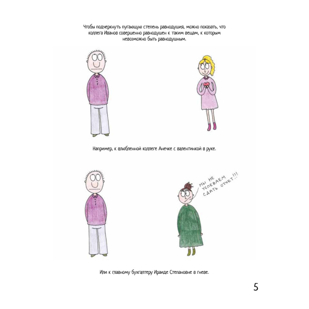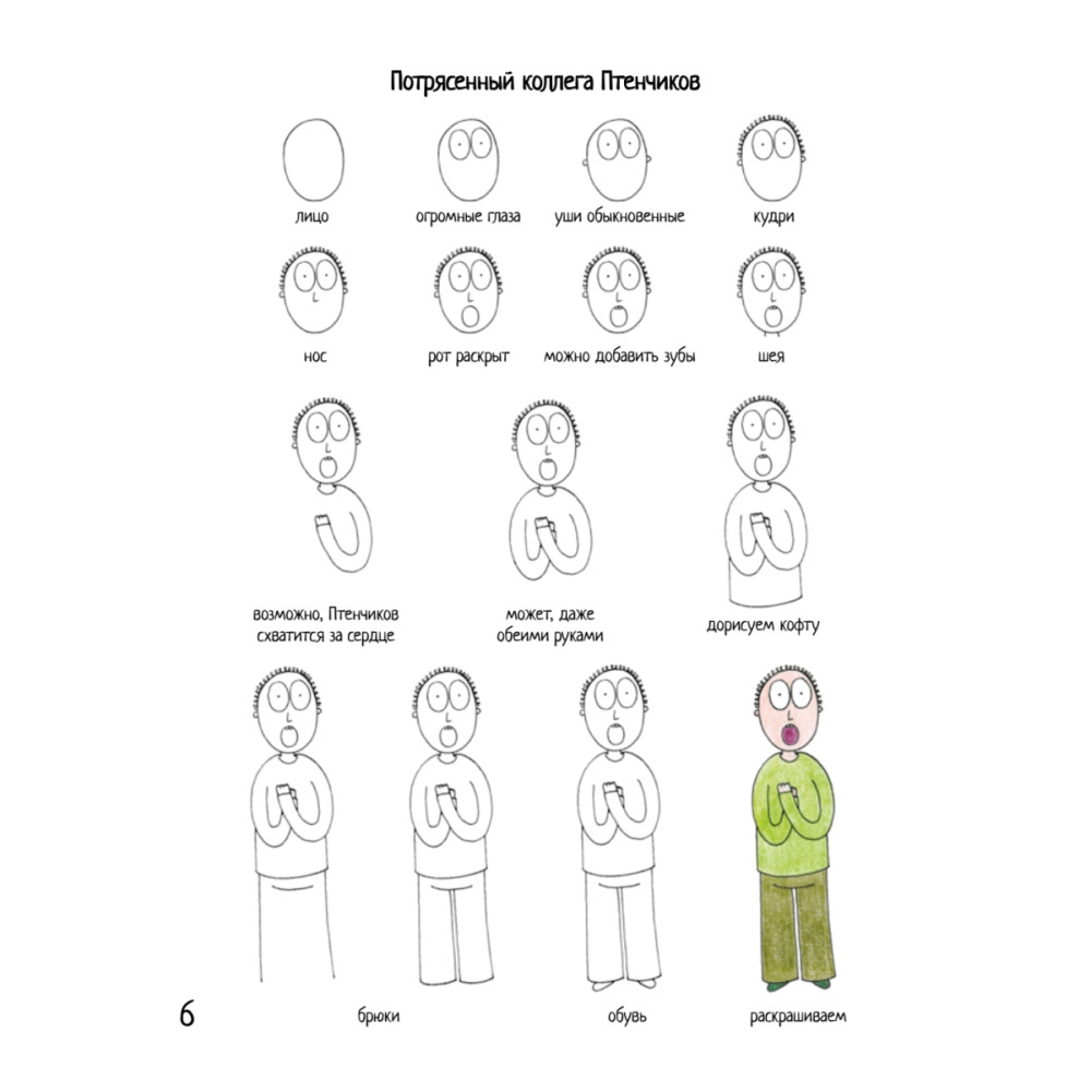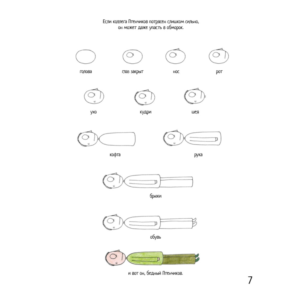 Это книжка про то, как нарисовать самые разные стороны рабочей жизни — от наивных и унылых коллег до ненормированного рабочего дня и симпатичной зарплаты.