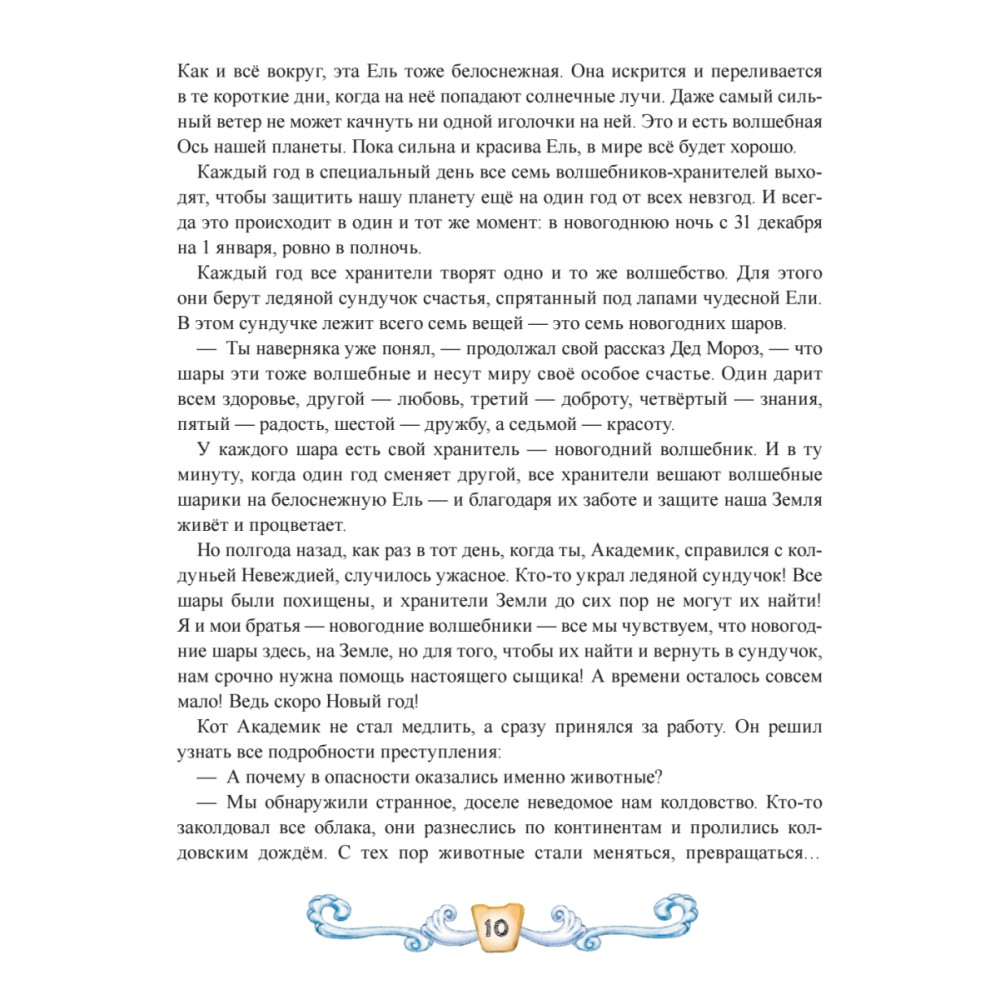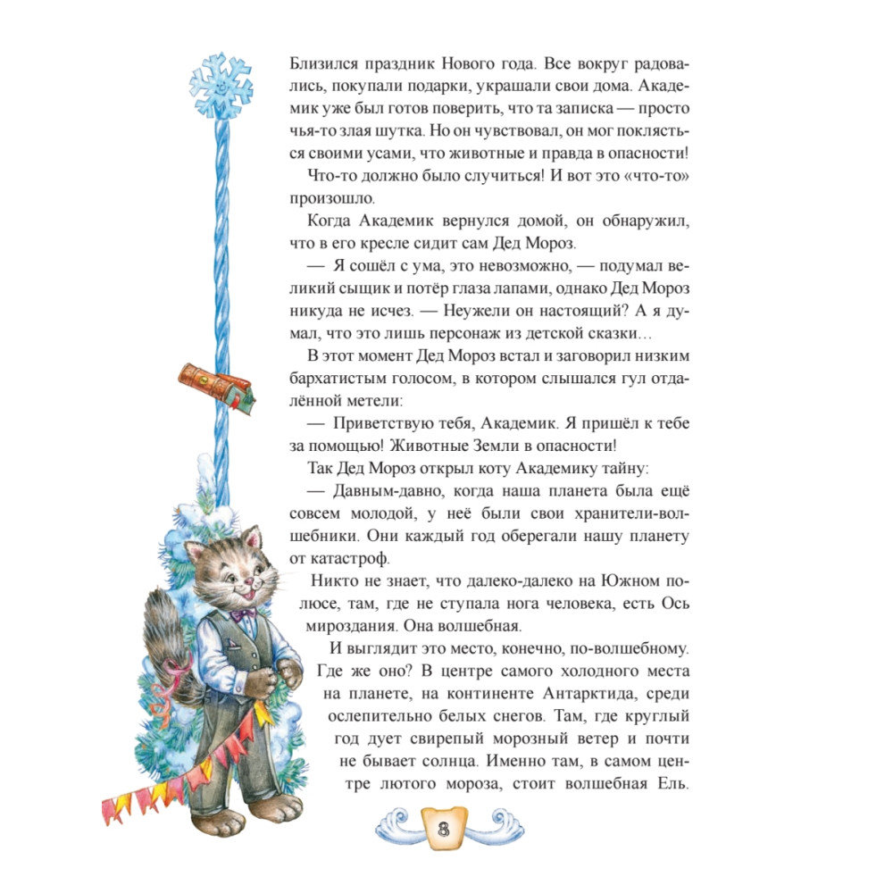 Это не обычная книга, а настоящий детектив для детей! Здесь вы найдёте не только удивительную сказку, но и весёлые познавательные задания, которые помогут вашему ребенку развивать наблюдательность и внимание, а ещё ― стать более самостоятельным, воспитанным и смелым. Главный персонаж, кот Академик, не может жить без приключений. В этот раз он отправится в новогоднее путешествие по различным континентам планеты, чтобы прийти на вы¬ручку Деду Морозу и помещать злому королю страны Зайцурии. Ваш ребёнок познакомится с географическими особенностями и животном мире разных континентов, новогодних традициях многих стран и народов. Наконец, в приложении вы найдете специальный волшебный конверт, в котором вы сможете вместе отправить письмо Деду Морозу. Авторы книги — профессиональные педагоги и психолог, создатели множества развивающих программ для малышей. Книга адресована детям в возрасте от 0 до 10 лет, она идеально подойдет для первого самостоятельного чтения.