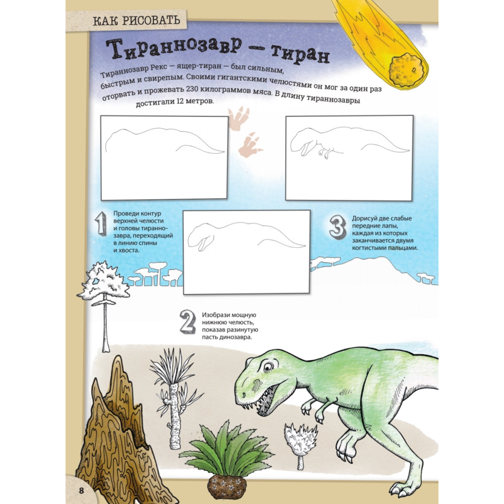 Представь себе, как сотни миллионов лет назад по нашей планете гуляли огромные динозавры и не только они! Невероятные летающие ящеры, гигантские монстры, скрывающиеся в древних океанах... Эта книга поможет тебе создавать замечательные картины о тех таинственных временах и научиться рисовать более 80 доисторических существ! Скорее бери карандаш и бумагу – тебя ждёт настоящее приключение!