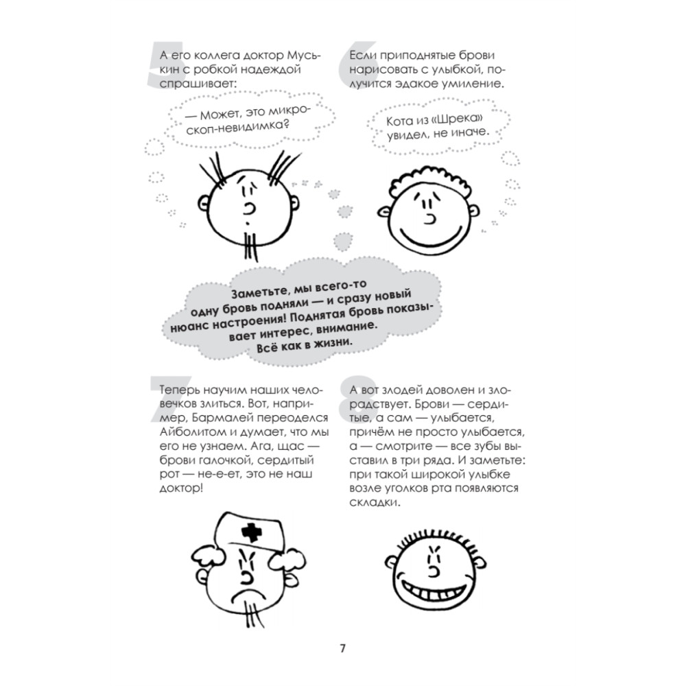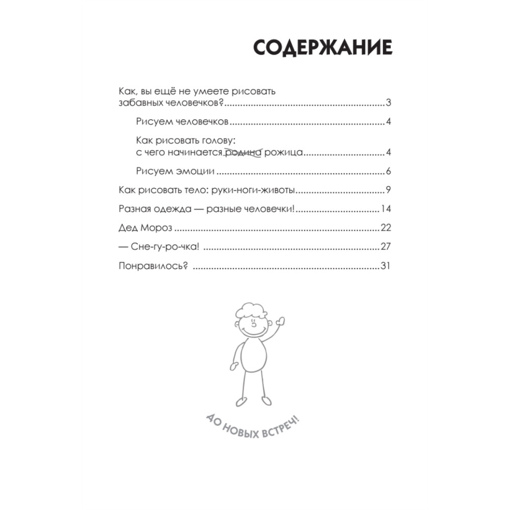 Из этой книги вы узнаете, что нарисовать человечка, смешную мордочку или Деда Мороза можно, пользуясь простой схемой, — буквально за десять — двадцать секунд. И УМЕТЬ РИСОВАТЬ для этого вовсе не обязательно: каждый способен провести чёрточку. Главное — знать, где и как.