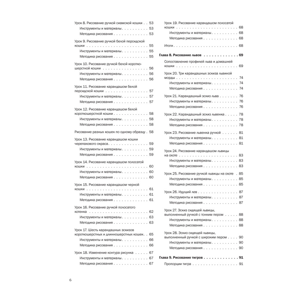 Известный художник и любитель кошек Фрэнк Лохан рассказывает о том, как передать в рисунке не только природную грацию, но и индивидуальный характер кошки. Начиная с азов, автор подробно, с большим количеством примеров, показывает, как сделать рисунок профессиональным и эмоциональным. Как начинающие, так и опытные художники найдут здесь для себя массу полезного и интересного. Как с помощью простого карандаша передать блеск и пышность кошачьей шерсти, как показать блеск и чувства в глазах животного, как правильно показать изящные движения кошки, чтобы картинка ожила? Рисуйте кошек с удовольствием!