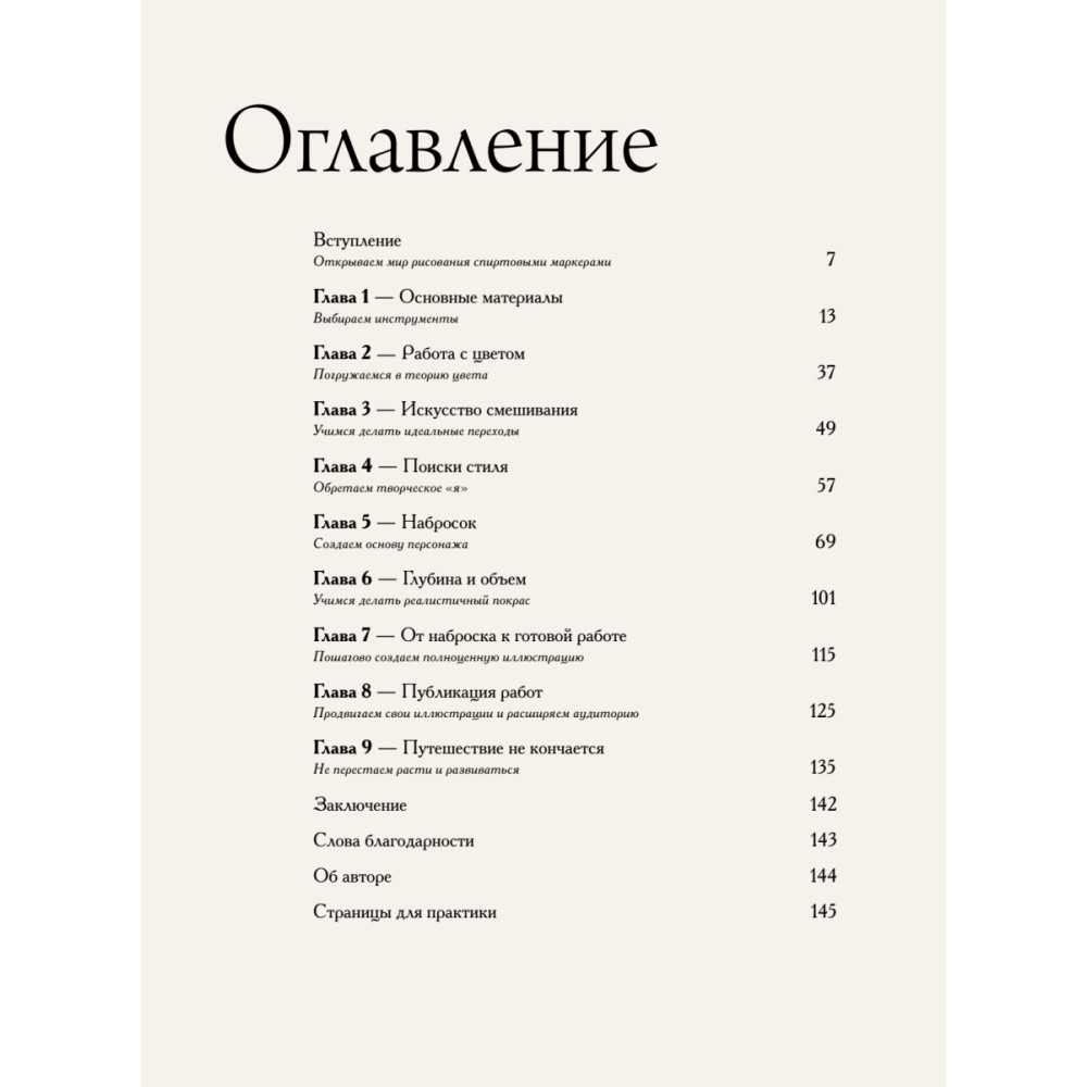 Погрузитесь в мир манги и научитесь рисовать спиртовыми маркерами Это руководство от автора ярких вдохновляющих иллюстраций Лидии Камбон (@msshanh) поможет начинающим художникам освоить базовые приемы работы спиртовыми маркерами и создать первых персонажей в стиле манги. Внутри книги вас ждут: • подробный обзор всех необходимых материалов; • основные техники работы с цветом для идеальных заливок; • приемы для прорисовки выразительных лиц и образов; • пошаговая инструкция по созданию персонажа с нуля; • шаблоны для отработки новых навыков; • секреты продвижения в соцсетях от опытного блогера-иллюстратора; • заряд творческой мотивации!