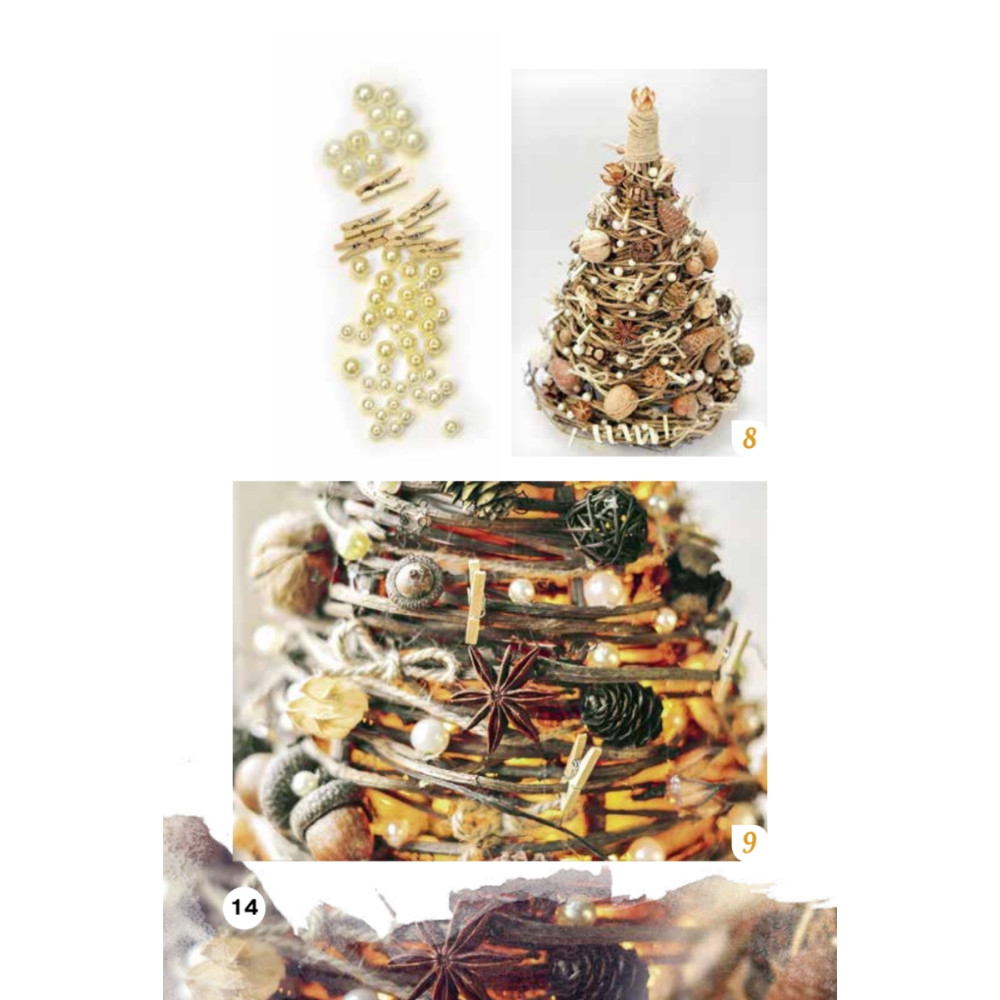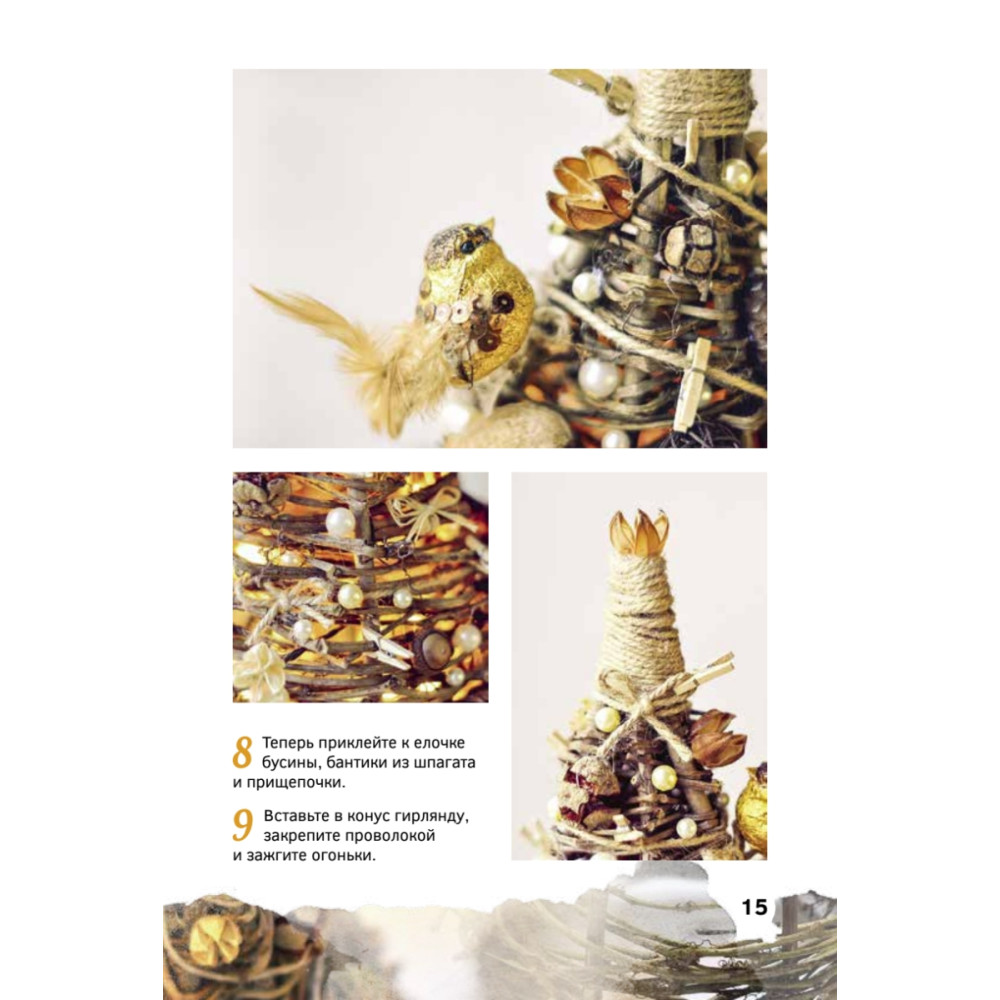 Оригинальная елочка из натурального сизаля с вкраплениями золотистых бусинок, звездочек и орешков создает удивительное свечение. В елочку, сплетенную из лозы, можно поместить лампочки и сделать ее светильником. А шишки, желуди и сухоцветы подчеркнут уникальный экодизайн.