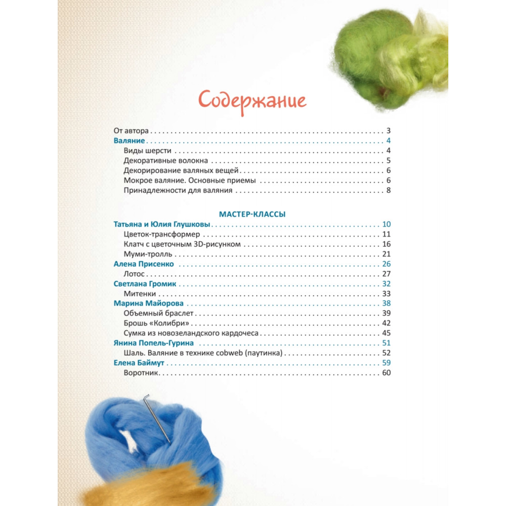 Книга знакомит читателей с авторской методикой создания неповторимых аксессуаров и украшений в технике мокрого валяния. Этот мир стиля, творчества и позитива откроют для вас лучшие мастера. На пошаговых мастер-классах они покажут, как создавать оригинальные, неповторимые вещи, которые вы будете носить каждый день и которые, безусловно, украсят ваш образ. Даже не имея навыков валяния, вы сможете сотворить своими руками теплое и красивое шерстяное чудо.