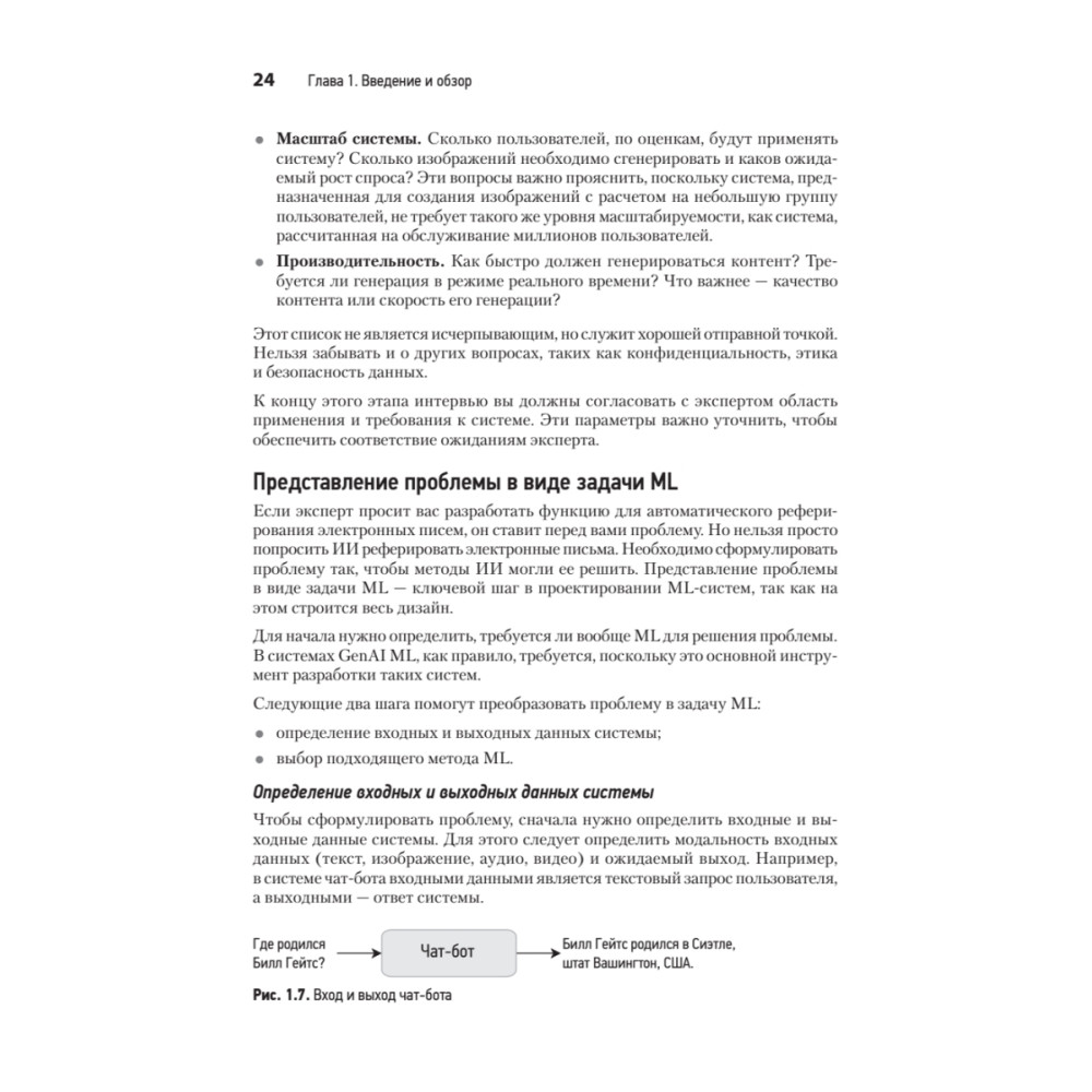 Интенсивный практикум по проектированию сложных ML-систем сфокусирован на самой горячей теме последних лет: генеративном искусственном интеллекте. Если вы датасайентист или ML-инженер, готовый перейти от теоретических знаний и изолированных моделей к созданию полноценных, масштабируемых и надежных продуктов, эта книга для вас. Авторы не просто рассказывают о трансформерах и диффузионных моделях — они проводят читателя через весь жизненный цикл системы: от сбора и очистки данных и выбора архитектуры до развертывания и мониторинга. Книга построена вокруг разбора реальных кейсов (Gmail Smart Compose, Google Translate, ChatGPT), что делает её бесценным ресурсом для подготовки к сложным интервью по System Design и для реальной работы.