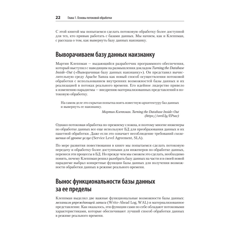 Авторы, Хьюберт Дюлей и Ральф М. Дебусманн, познакомят вас с основами потоковых баз данных и кроме всего прочего расскажут, как эти базы данных позволяют оптимизировать инфраструктуру. Вы узнаете о различиях между потоковыми базами данных, потоковой обработкой и аналитической обработкой в реальном времени (OLAP), а также о том, когда следует использовать push- и pull-запросы и как обслуживать синхронные и асинхронные данные, обрабатываемые потоковыми базами данных.